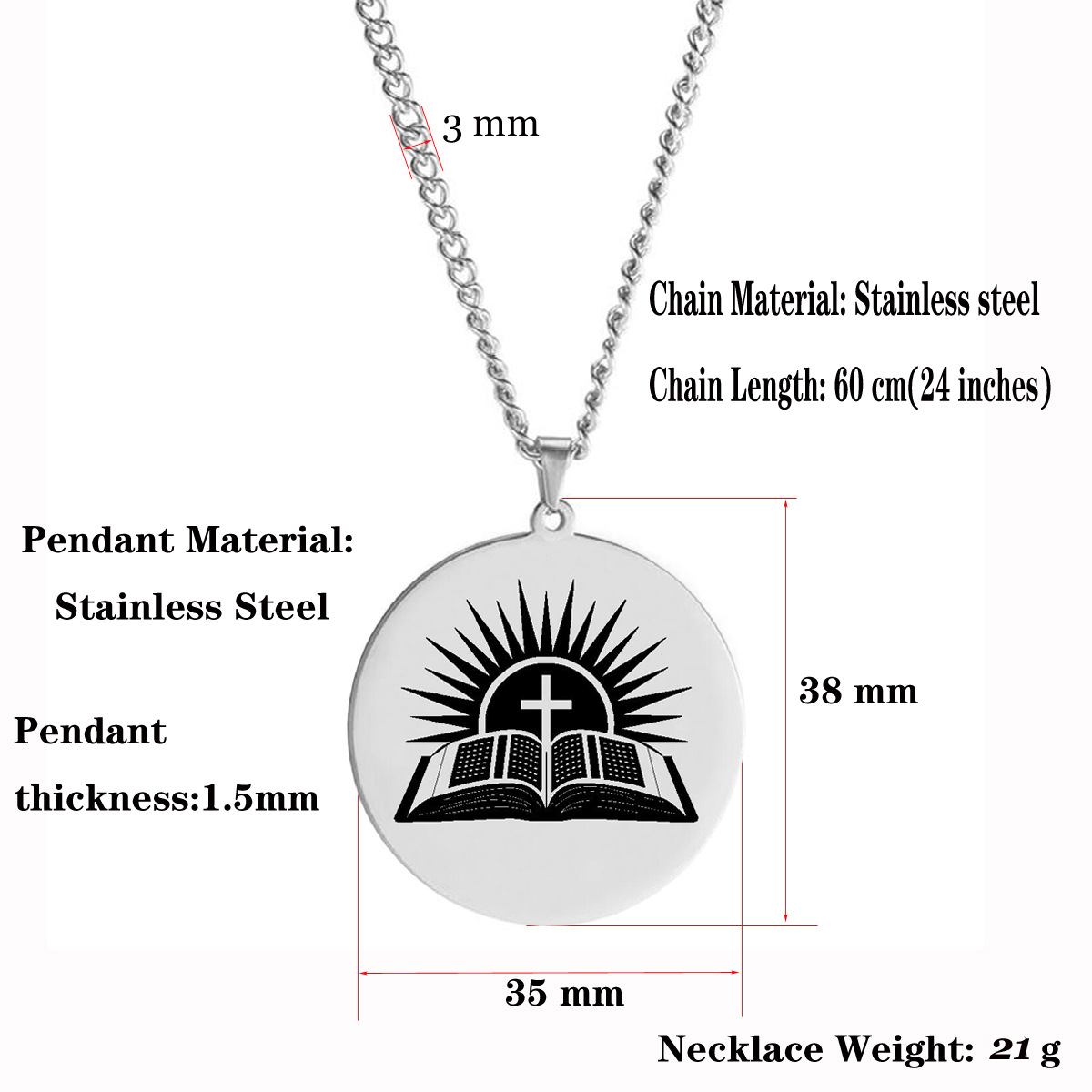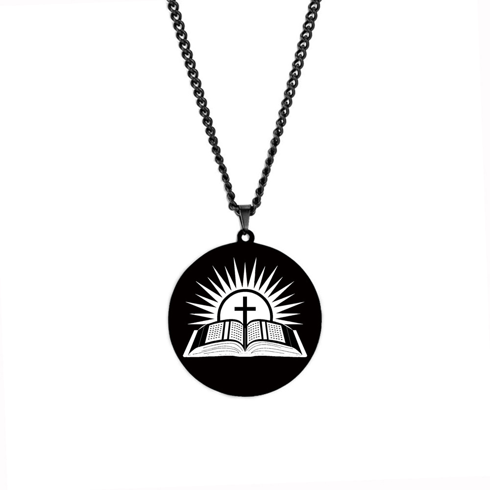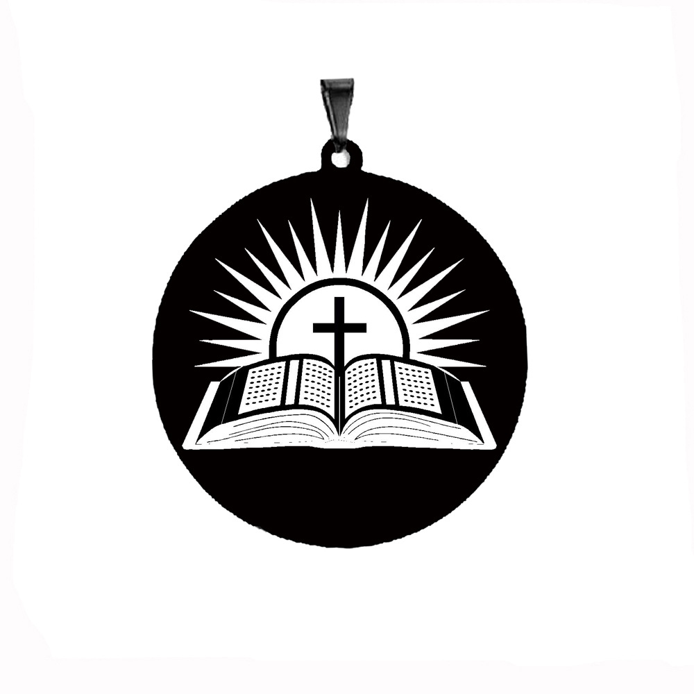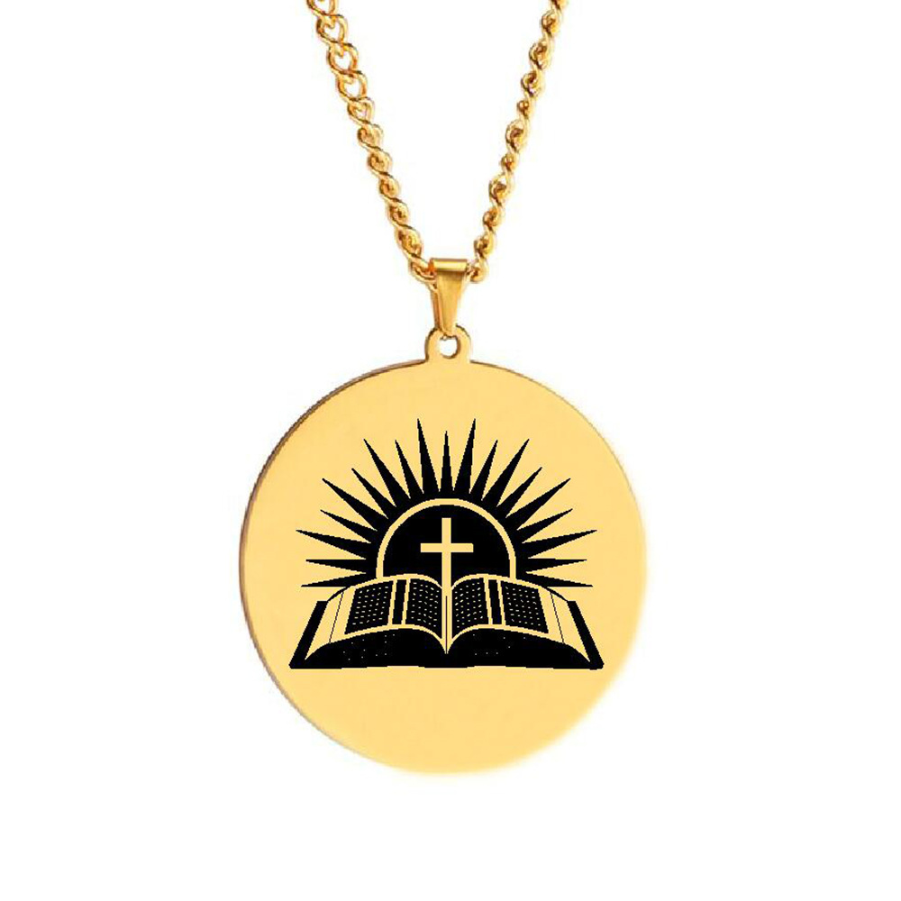 Furnace Plated Real Gold Bible Sunset Cross Amulet Jewelry Stainless Steel Laser Engraved Pendant Necklace