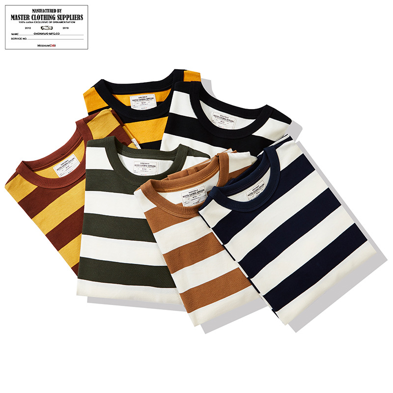 OKONKWOAmerican Retro Ami Khaki T-shirt Heavy Prisoner Motorcycle Men's Thick Striped Long-sleeved T-shirt