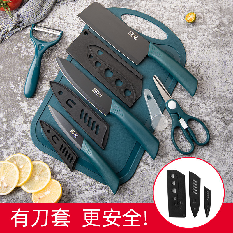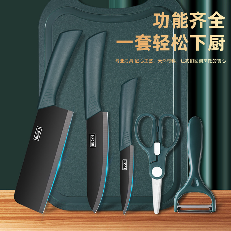 Internet Celebrity Knife Set Dark Green Black Blade Kitchen Knife Kitchen Household Kitchen Knife Baby Food Supplement Fruit Knife Six-piece Set