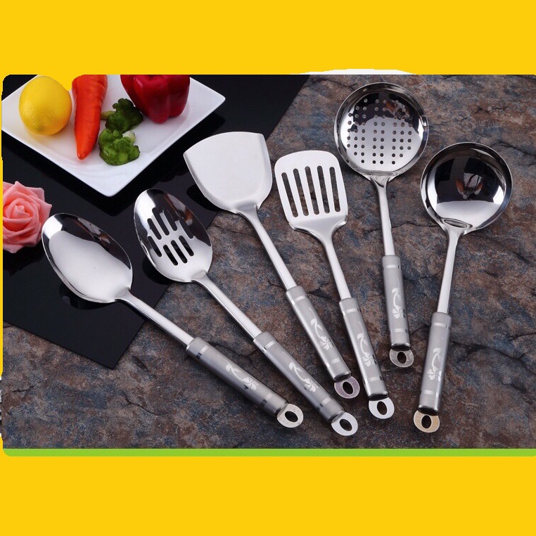 201 Stainless Steel Kitchen Utensils Set Kitchen Cooking Spatula Large Colander Six-piece Kitchen Utensils Set
