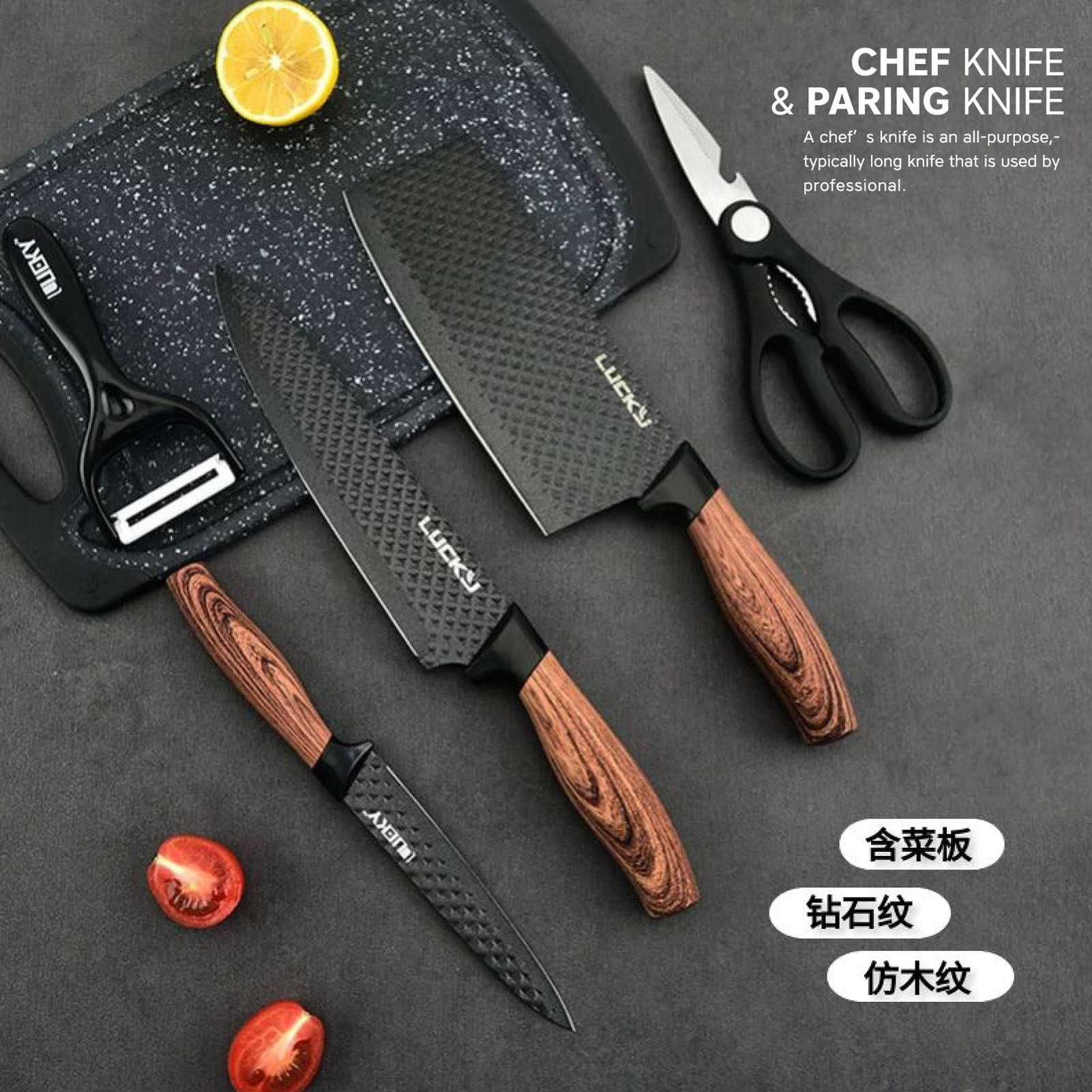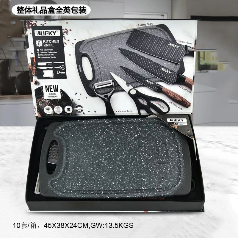 E-commerce Knife Set Kitchen Household Kitchen Knife Black Knife Set Complete Set Of Six-piece Cutting Board Cutting Board