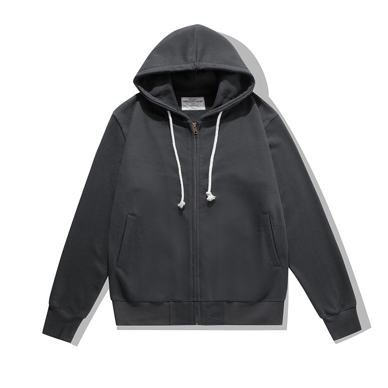 OKONKWOHeavyweight500g Terry Bottom Solid Color Men's And Women's Hooded Sweatshirt Basic Zipper Hoodie Cardigan