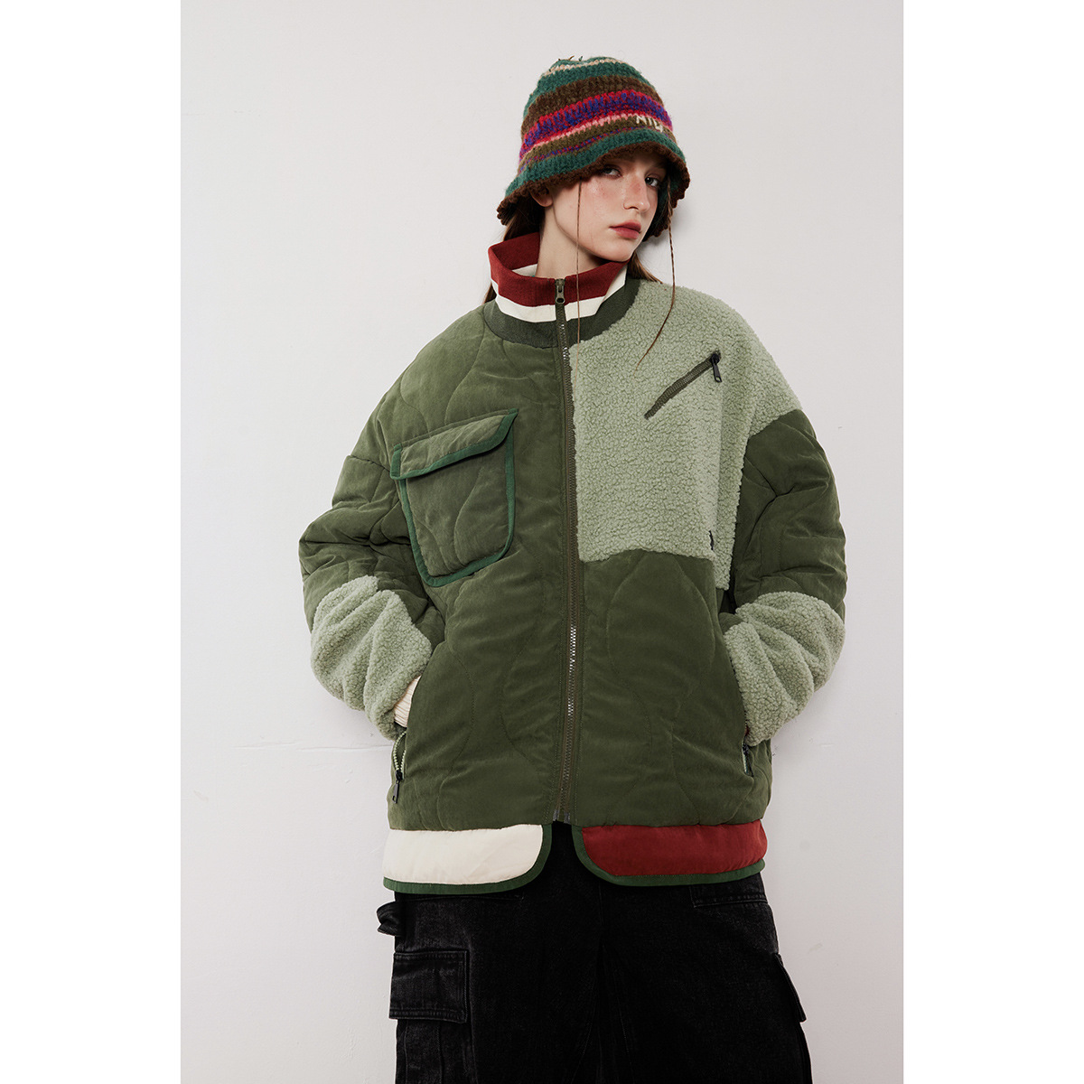 ANSWERMEAmerican Retro Spliced Lamb Wool Coat Warm Cotton Coat For Men And Women Winter Cotton Coat MY135