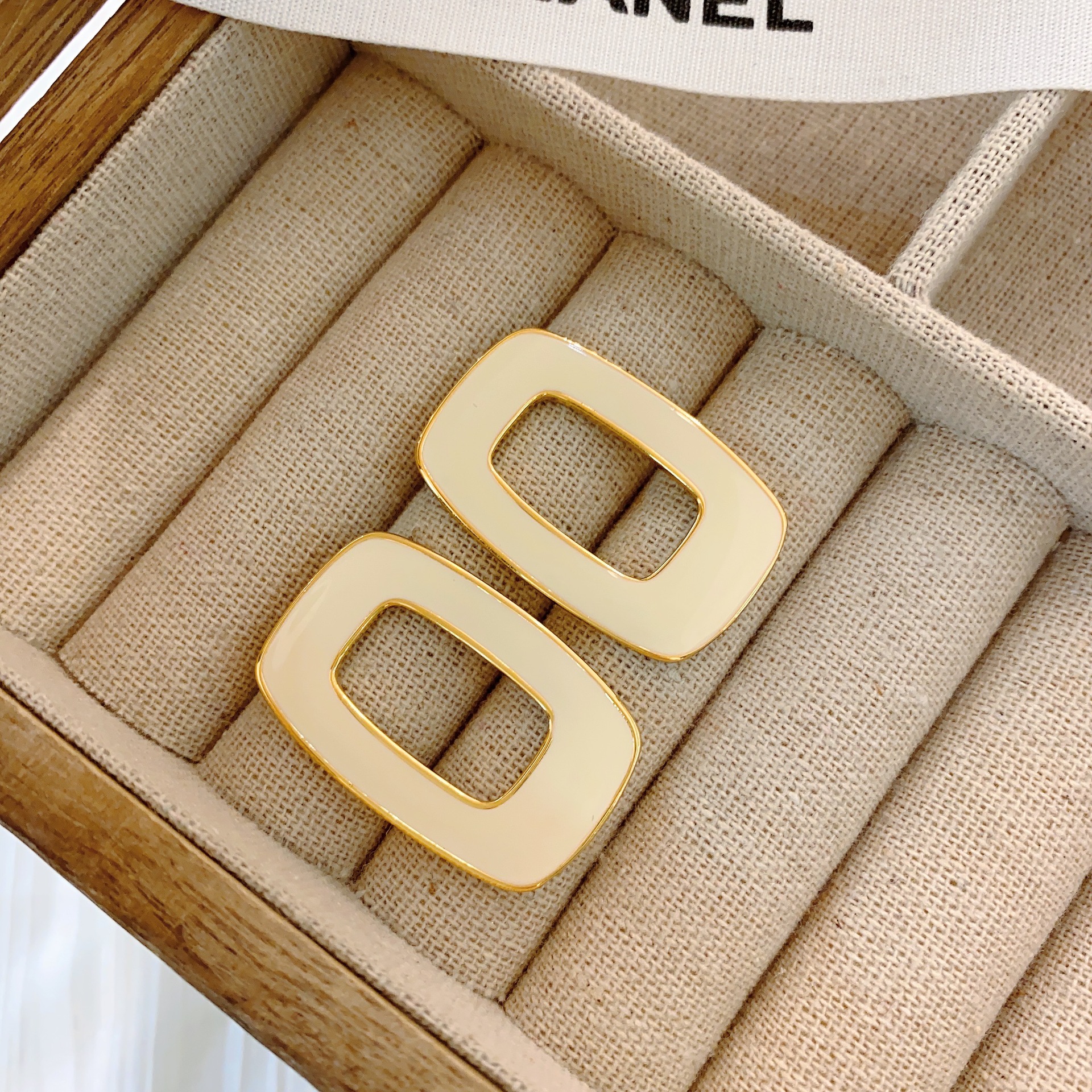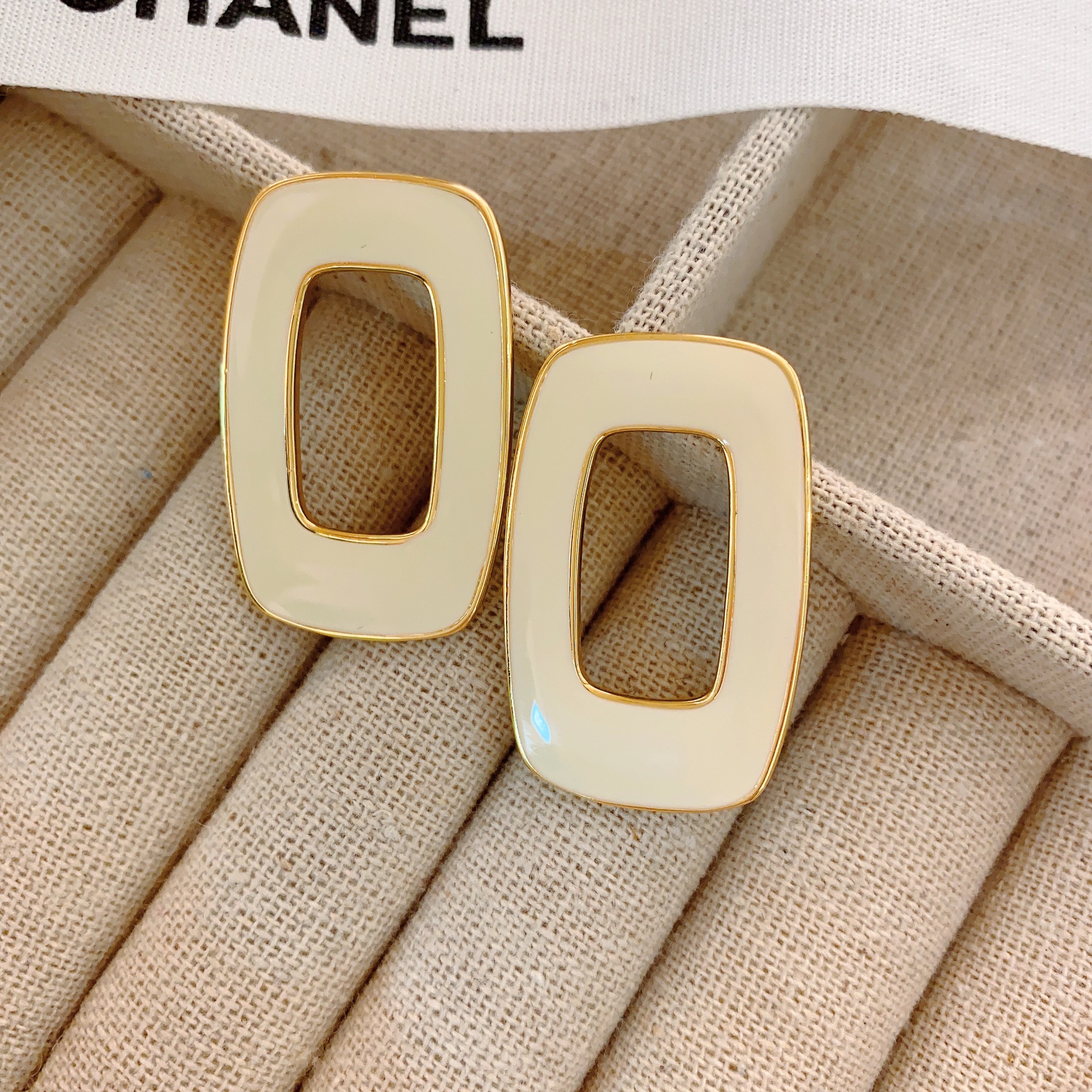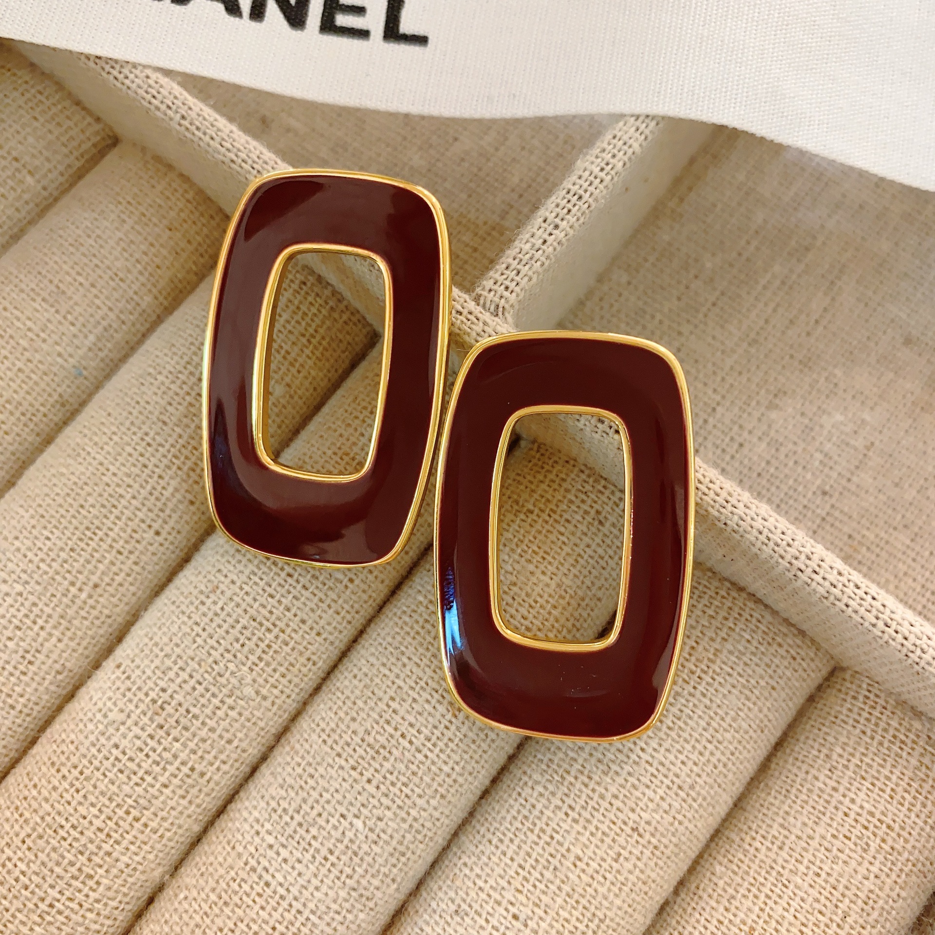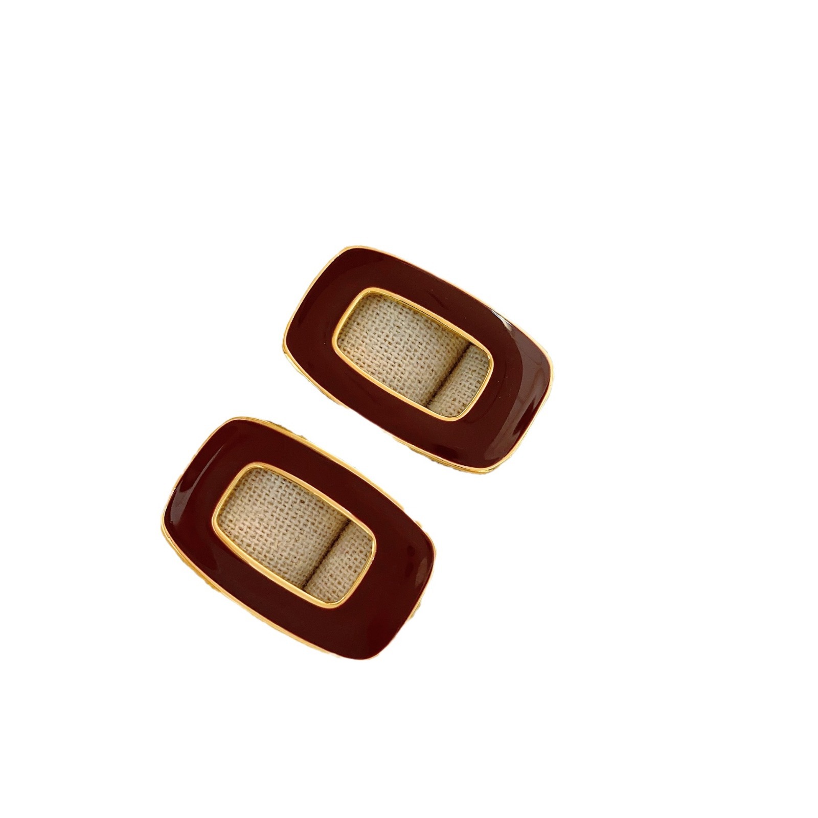 South Korea's Dongdaemun Metal Style Niche High-end Hollow Geometric Square Drip Glaze Versatile Fashion Earrings For Women