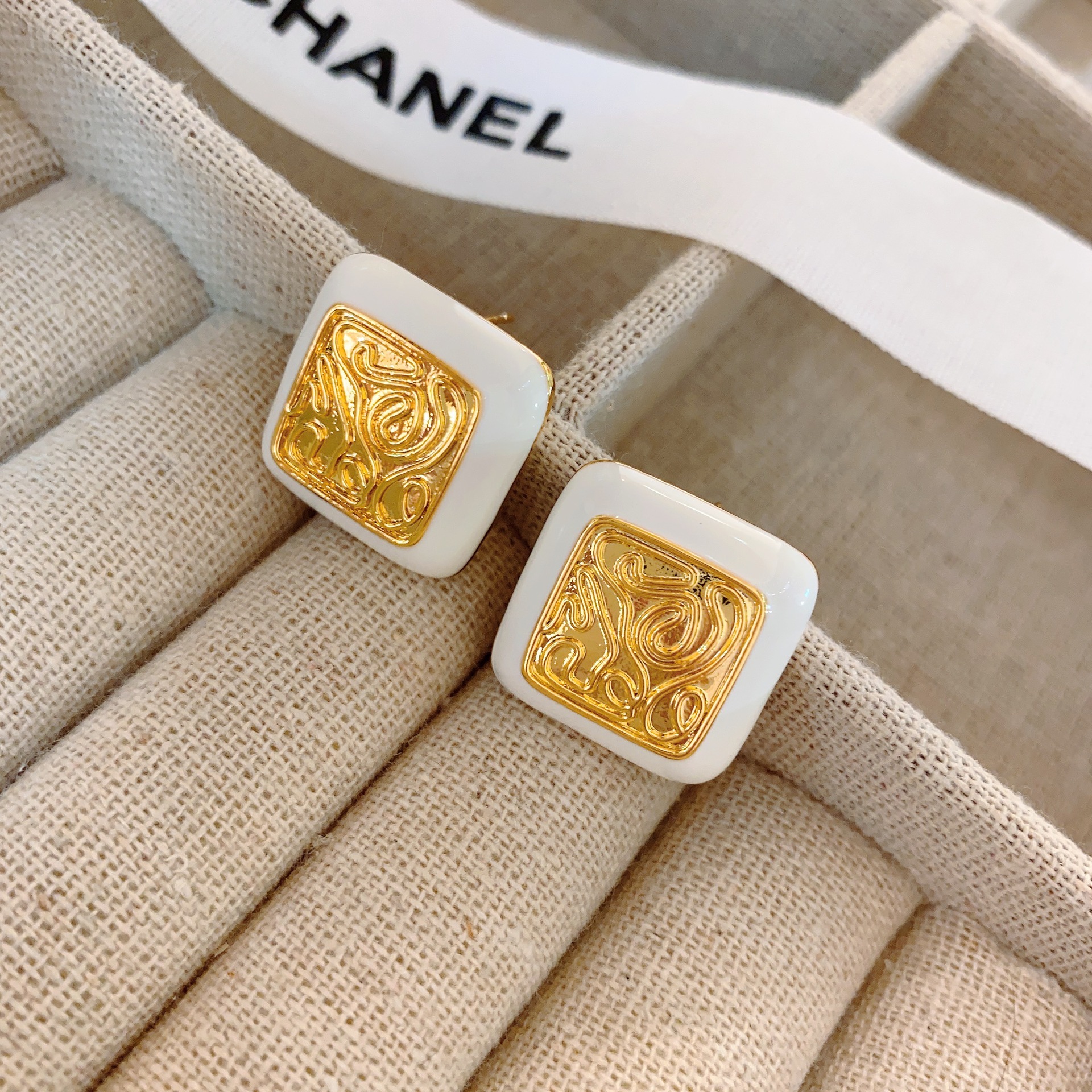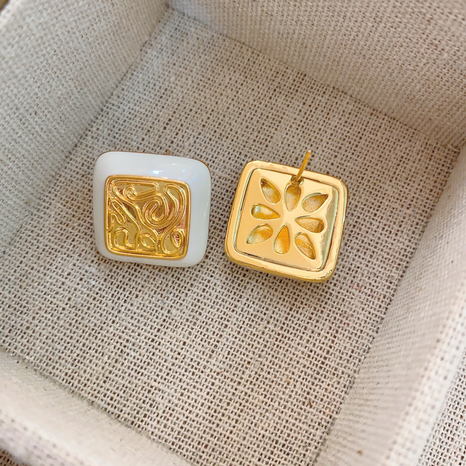 Geometric Square Metal Design Earrings,Atmospheric And Temperament Earrings,Retro Small Fragrant Style Earrings Suitable For Round Faces