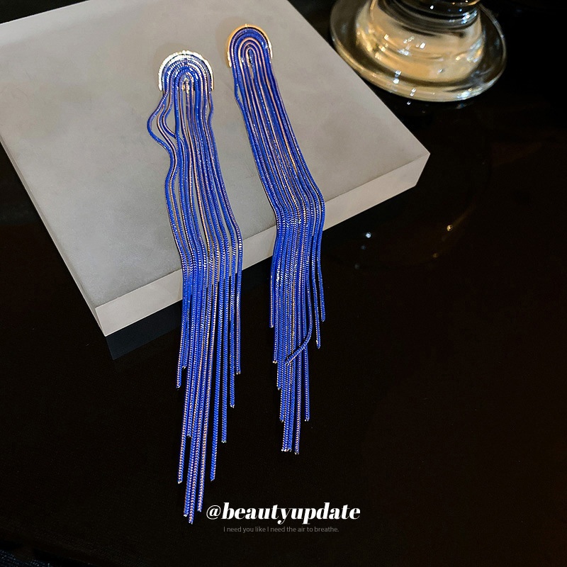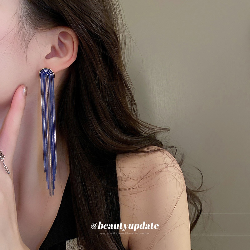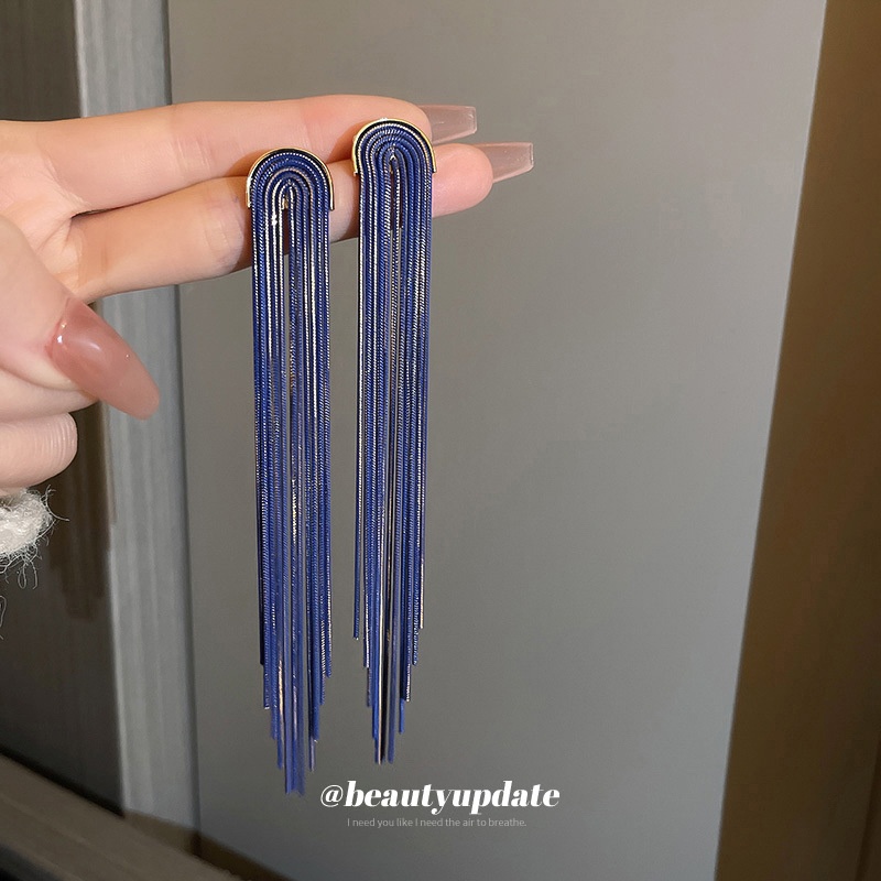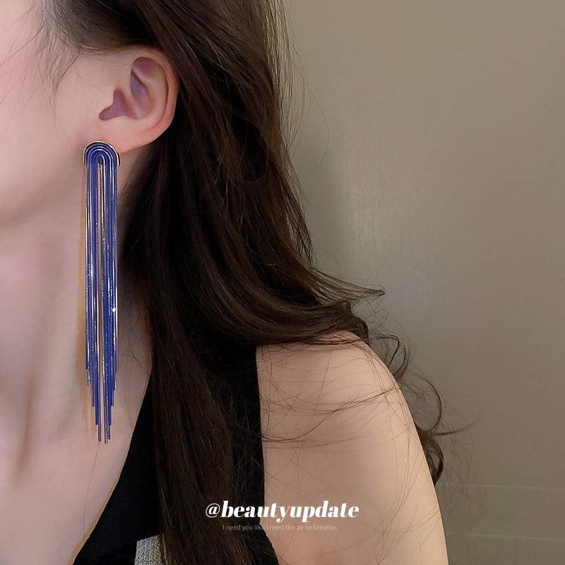 Silver Needle U-shaped Chain Long Tassel Earrings European And American Fashion Personality Internet Celebrity Earrings Earrings Design Sense Earrings For Women