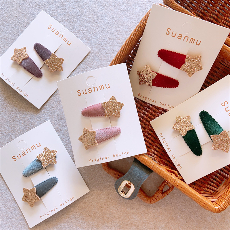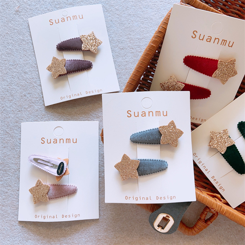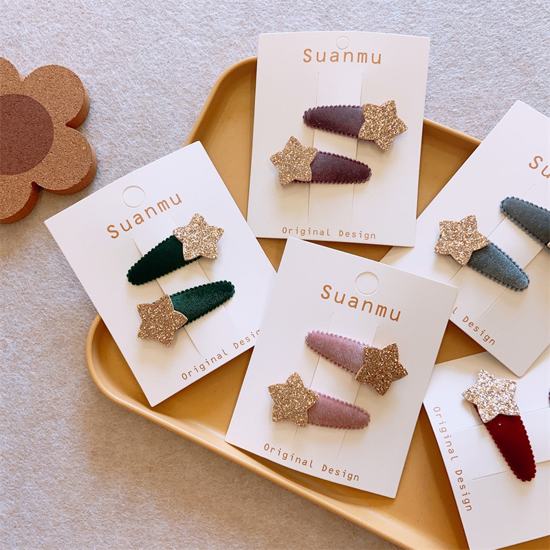 B01 Children's Autumn And Winter Plush Fabric Baby Clip Girl Glitter Star Flocking Warm Color Hair Clip Basic Light Version Pair
