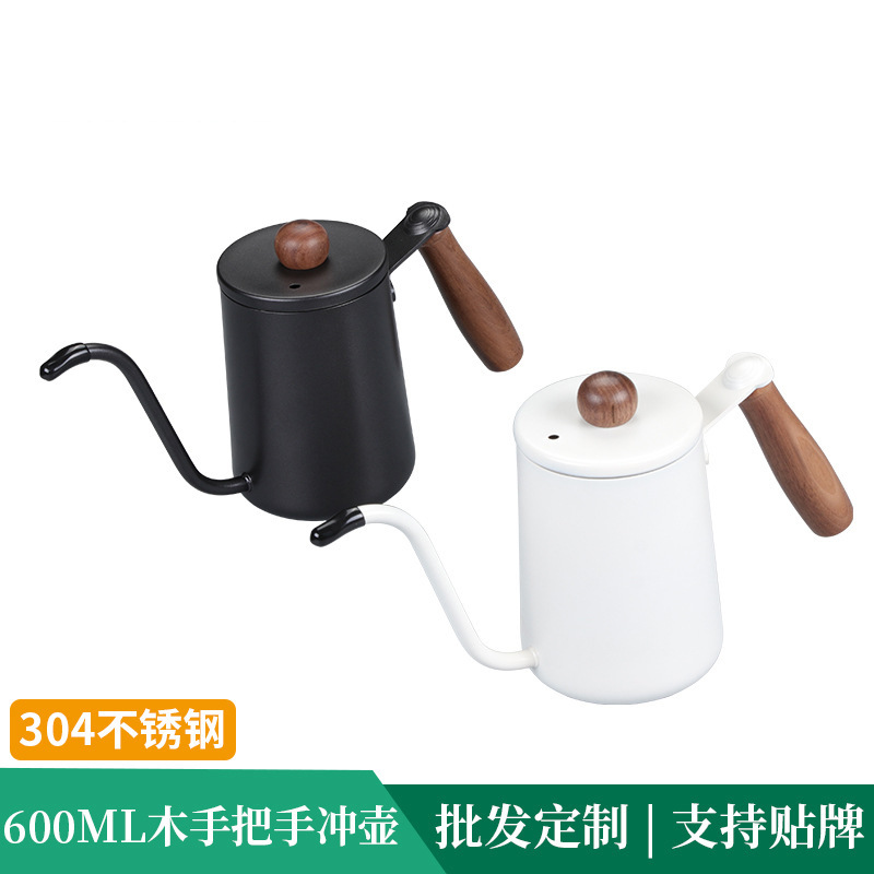 Walnut Handle304 Hand Brewing Pot Stainless Steel Fine Mouth Coffee Pot With Lid Hand Pouring Coffee Pot