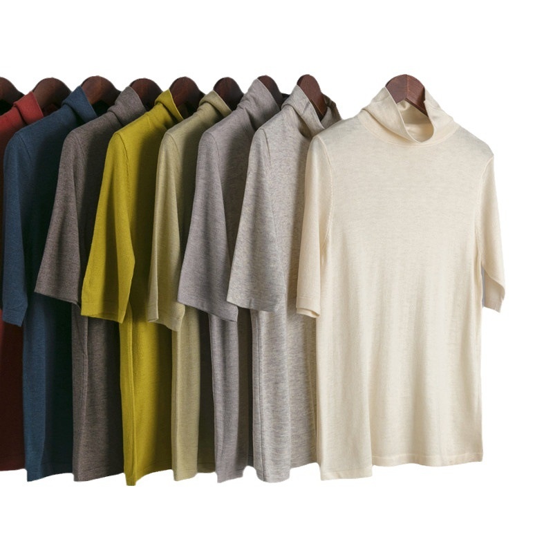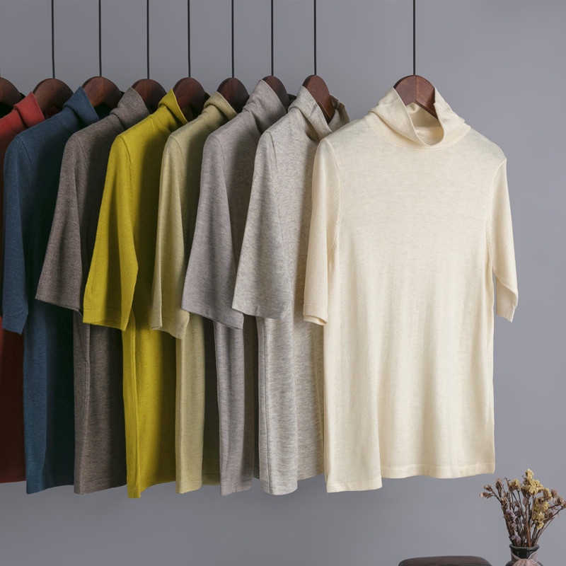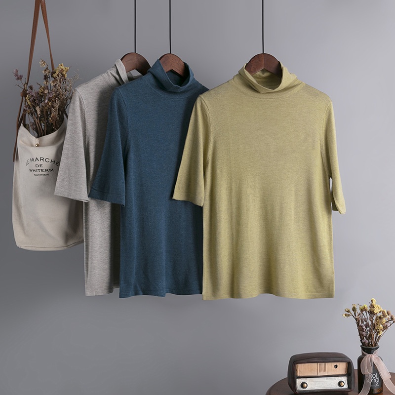 Foreign Trade Women's Knitted Bottoming Sweater Autumn And Winter Skin-friendly Knitted Sweater Three-quarter Sleeve Stand Collar Loose European Version In Stock