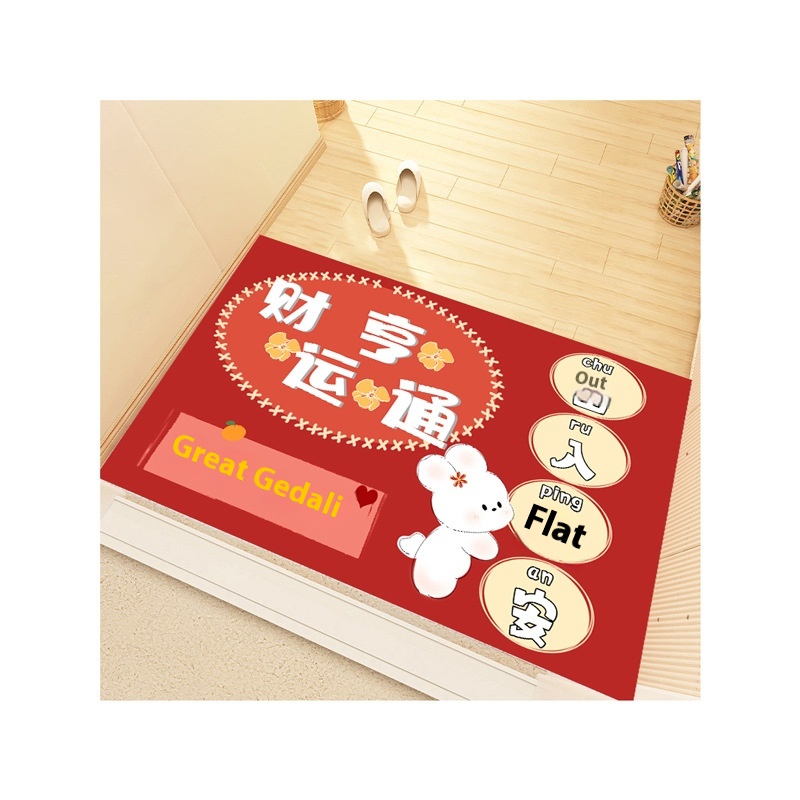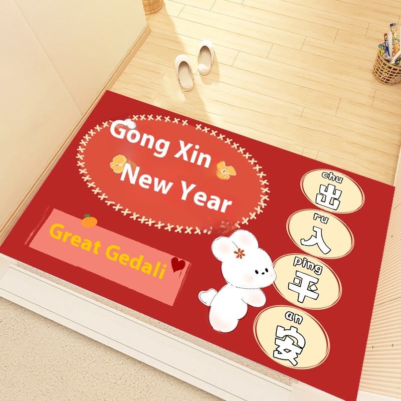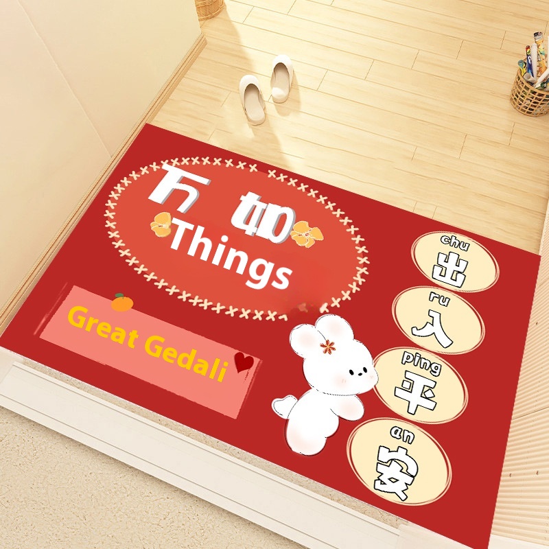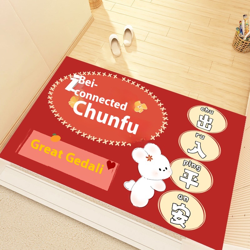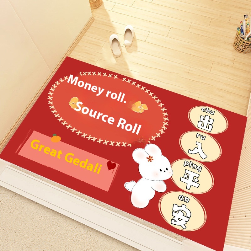 Home Entrance Door Non-slip Door Mat Cartoon Entry Door Mat Year Of The Rabbit Floor Mat Crystal Velvet Entry And Exit Safe Red Door Mat