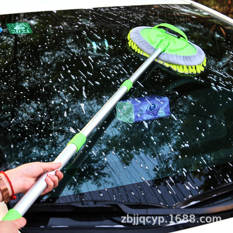 Chenille Car Brush Three-section Aluminum Alloy Telescopic Car Wash Mop Brush Soft-bristle Cleaning And Wiping Car Tool