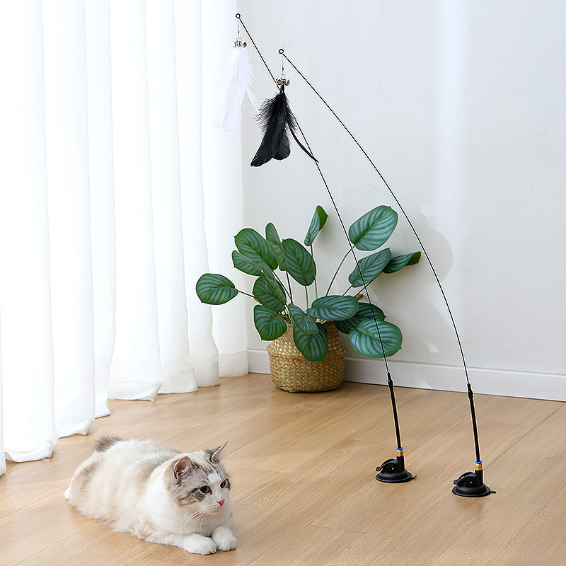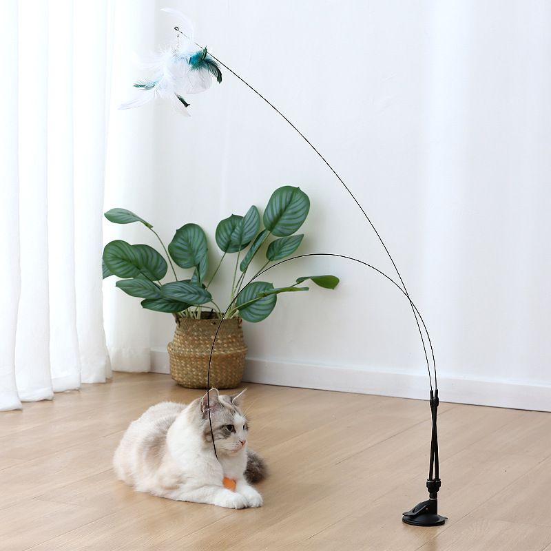 Suction Cup Wire Cat Flirting Stick Powerful Interactive Cat Pet Supplies Feather Funny Cat Toy Cat Supplies Cat