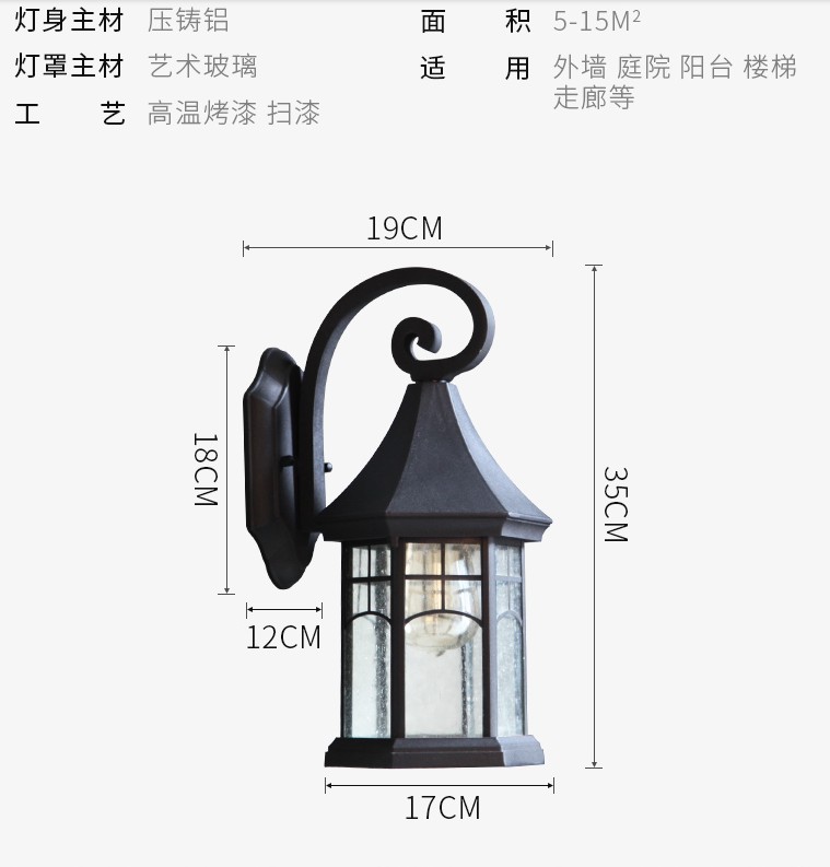 Retro Outdoor Wall Lamp European Waterproof Outdoor Lamp Aisle Garden Lamp American Balcony Exterior Wall Terrace Lamp