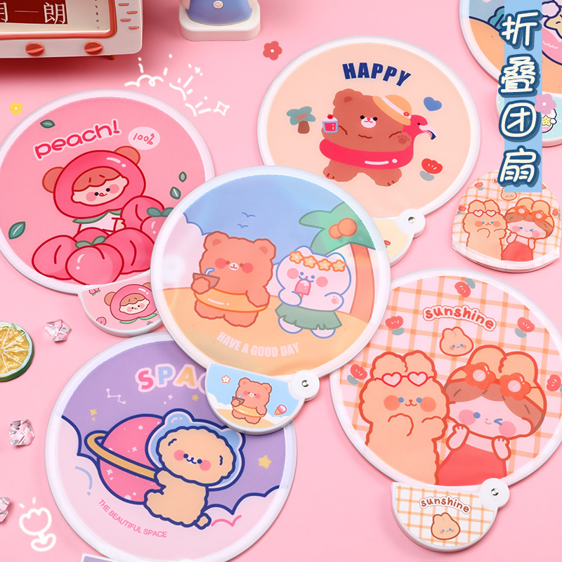 Cartoon Folding Small Round Fan Cute Isn Style Portable Mini Cloth Fan Children's Day Gift Folding Fan