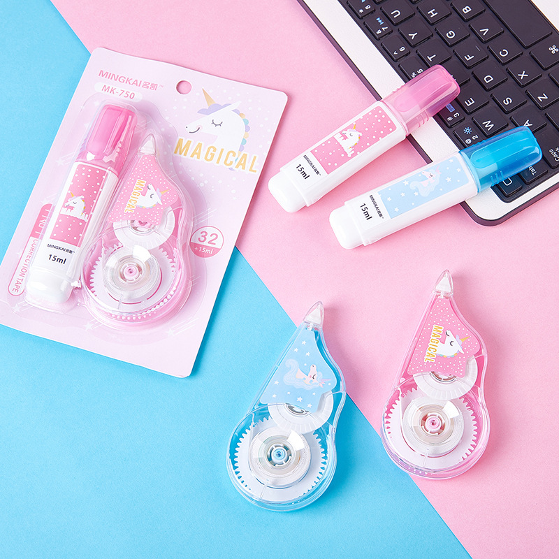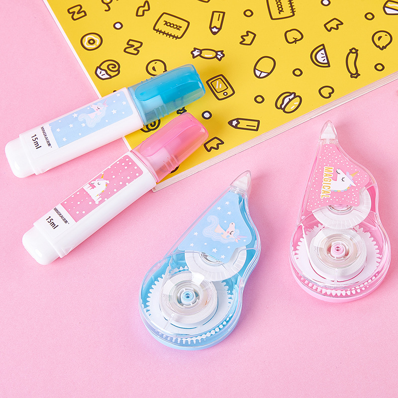 Correction Tape Cartoon Unicorn Transparent Creative Two-in-one Correction Fluid Correction Tape Office Student Stationery Correction Tape