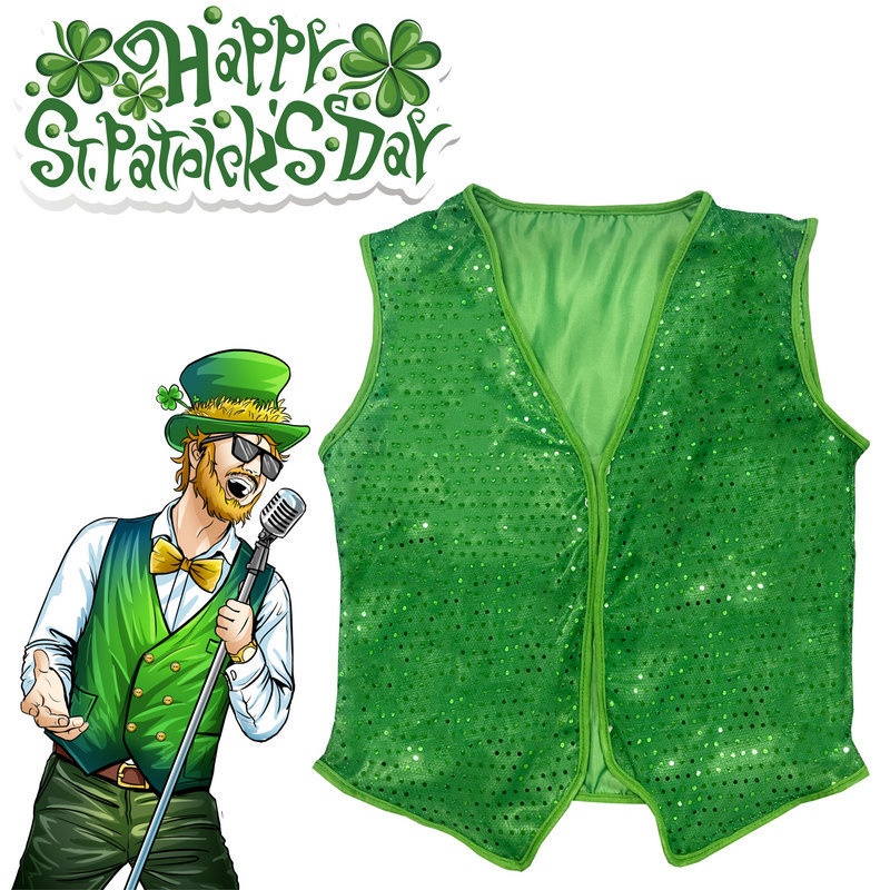 Irish Green Clothing St. Patrick's Day Clover Performance Clothing Sequined Vest Vest Party Wear