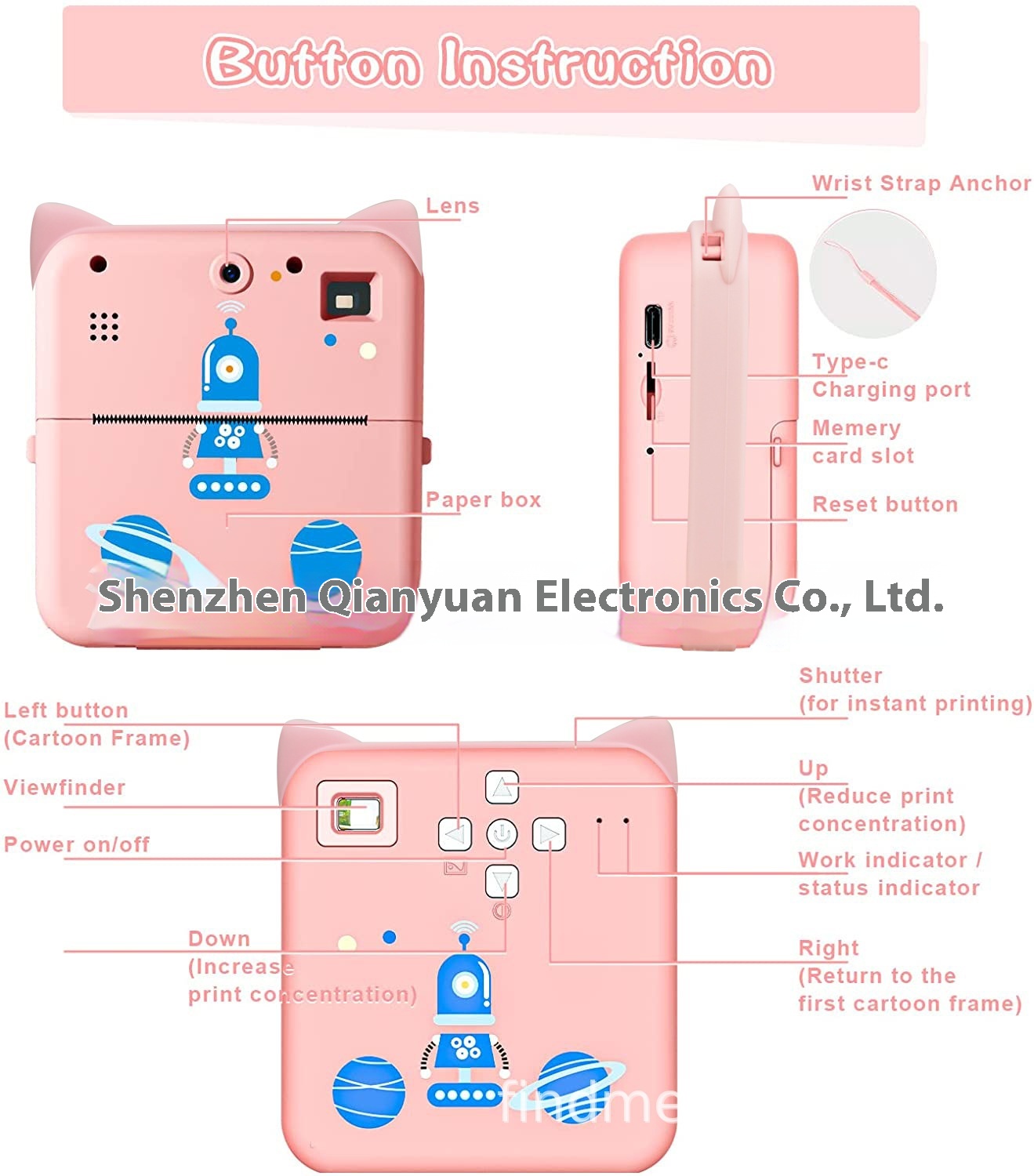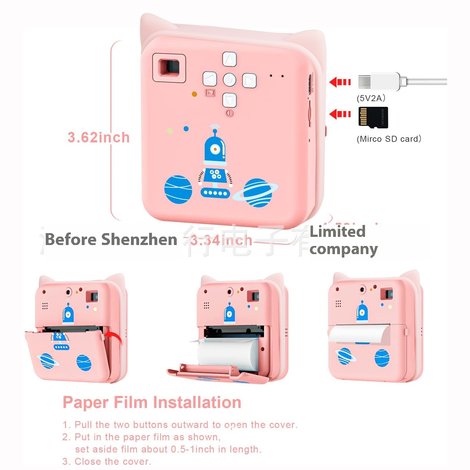 Mini Printable Camera Toy For Children Thermal Portable Polaroid Bluetooth Connected Screenless Camera