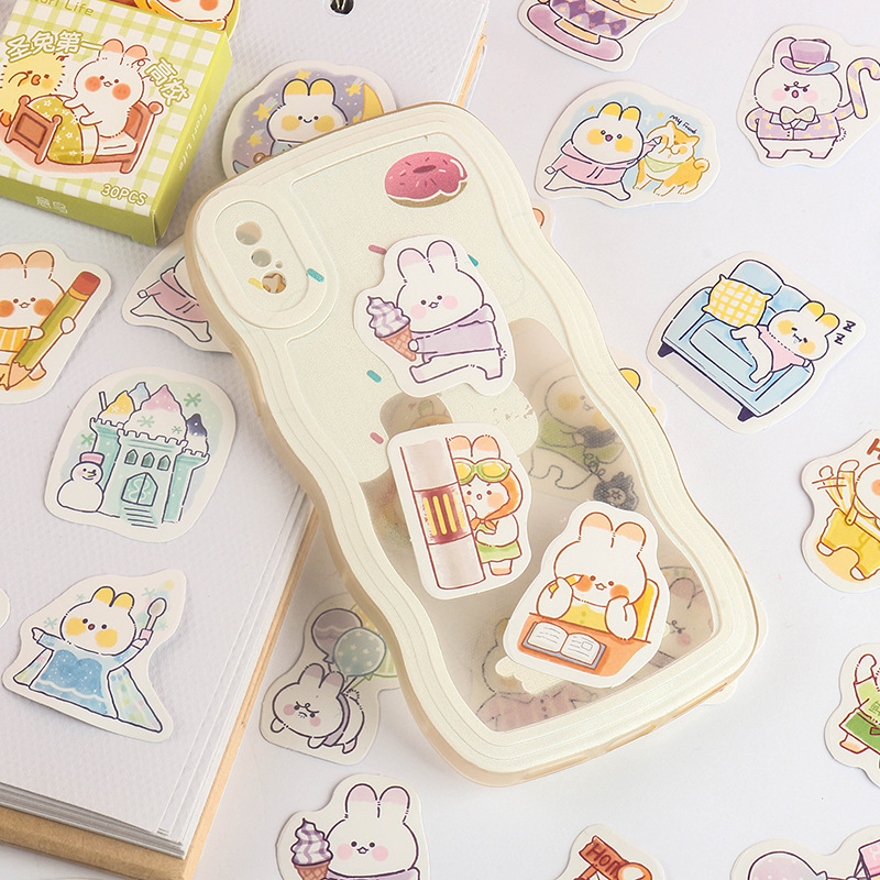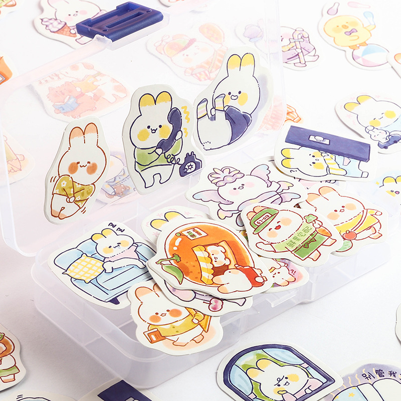 Cute Rabbit City Cute Cartoon Rabbit Handbook Stickers Decorative Growth Manual Material Photo Album DIYBoxed Stickers