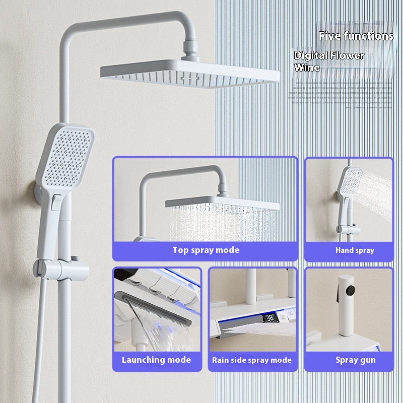 Piano Key Raindance Five-function Constant Temperature Bath Shower Set Home Bathroom Smart Digital Display Shower Booster Shower