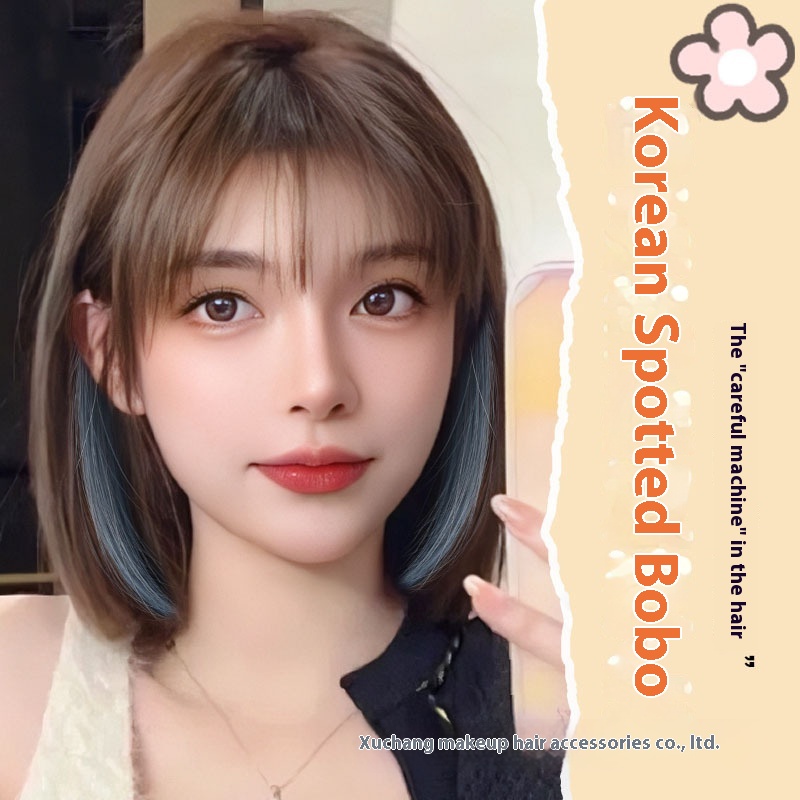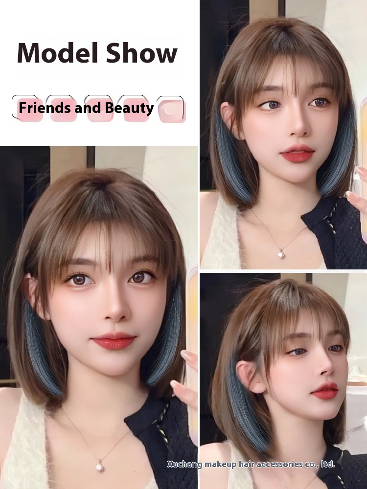 Wig For Women With Short Hair, Fashionable Wave Hair, Highlighted Hair, Simulated Hair, Round Face, Medium-length Wig Set In Stock