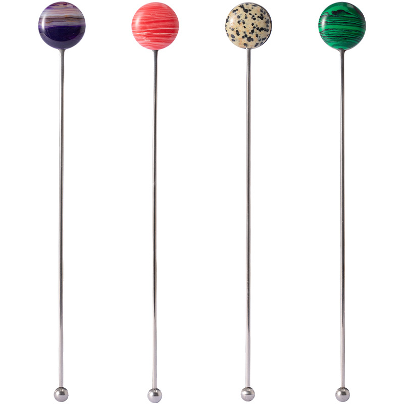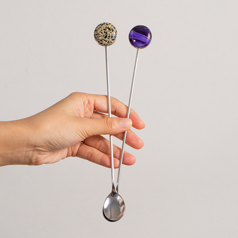 Nordic Style304 Stainless Steel Coffee Stirring Stick Natural Raw Stone Cocktail Stick High Value Stirring Spoon