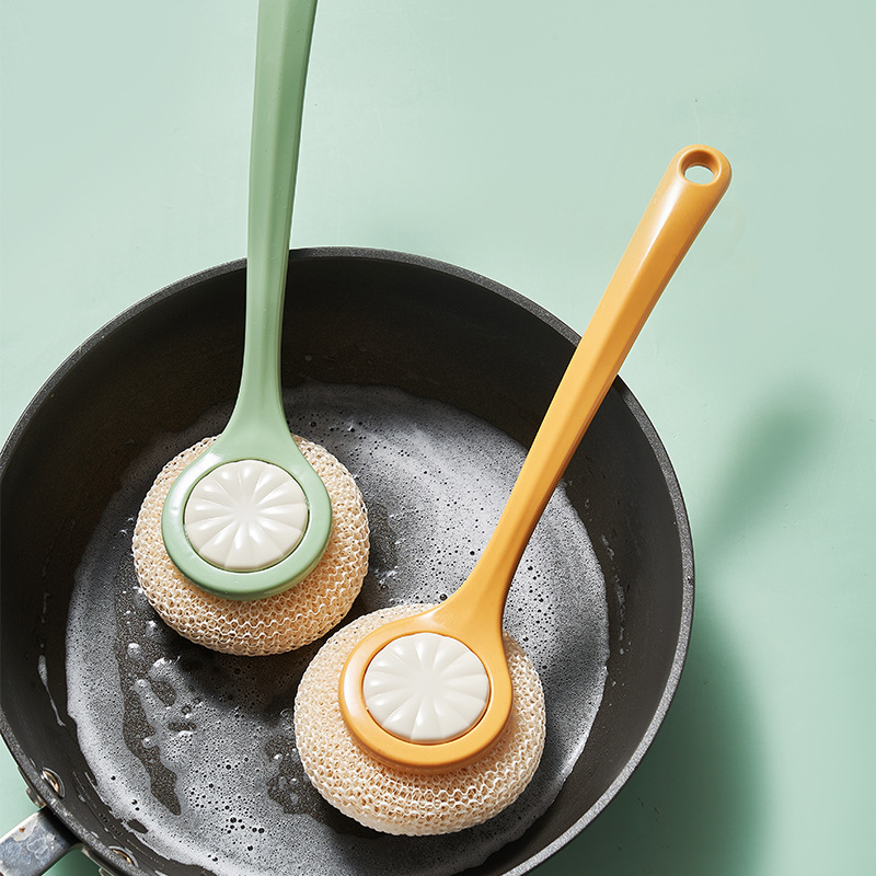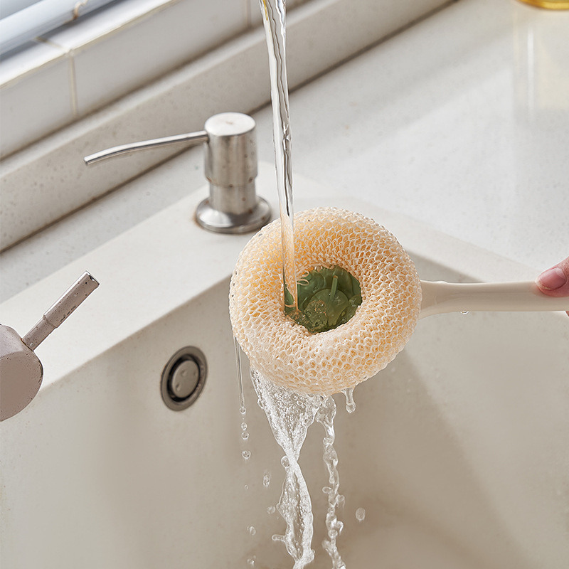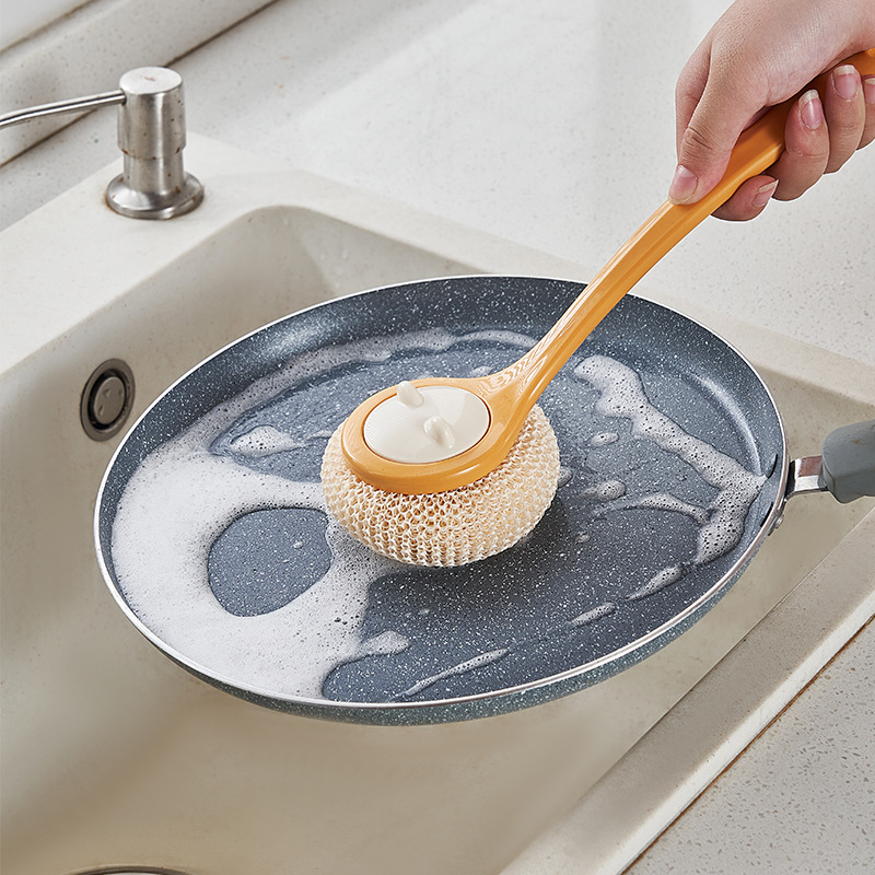 Long Handle Dishwashing Pot Brush Kitchen Supplies Cleaning Tool Brush Natural Sisal Pot Washing Brush Beech Bowl Brush Household