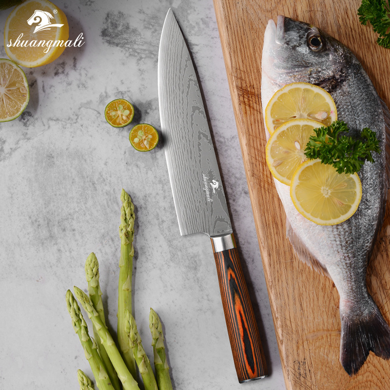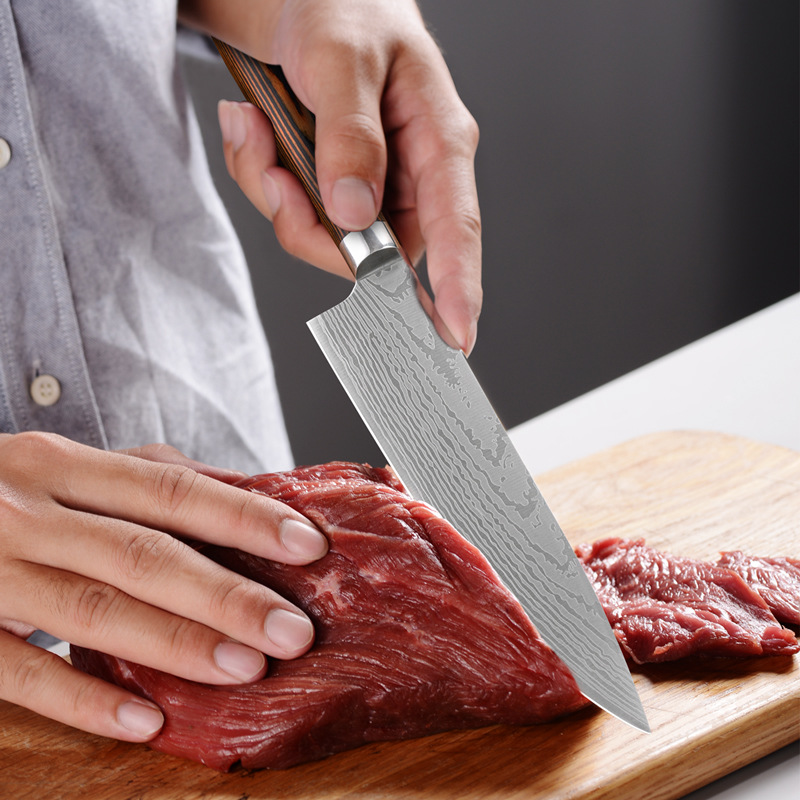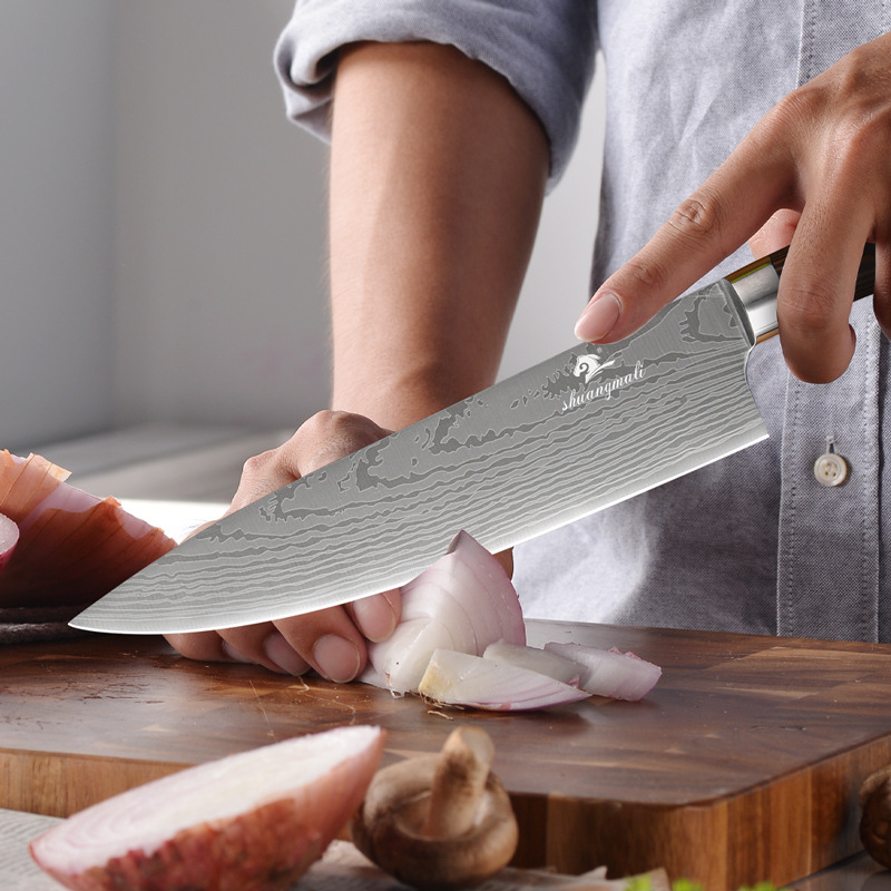 Chef's Knife Damascus Laser Pattern8-inch Stainless Steel Kitchen Meat Cleaver Slicing Knife Yangjiang Shipping