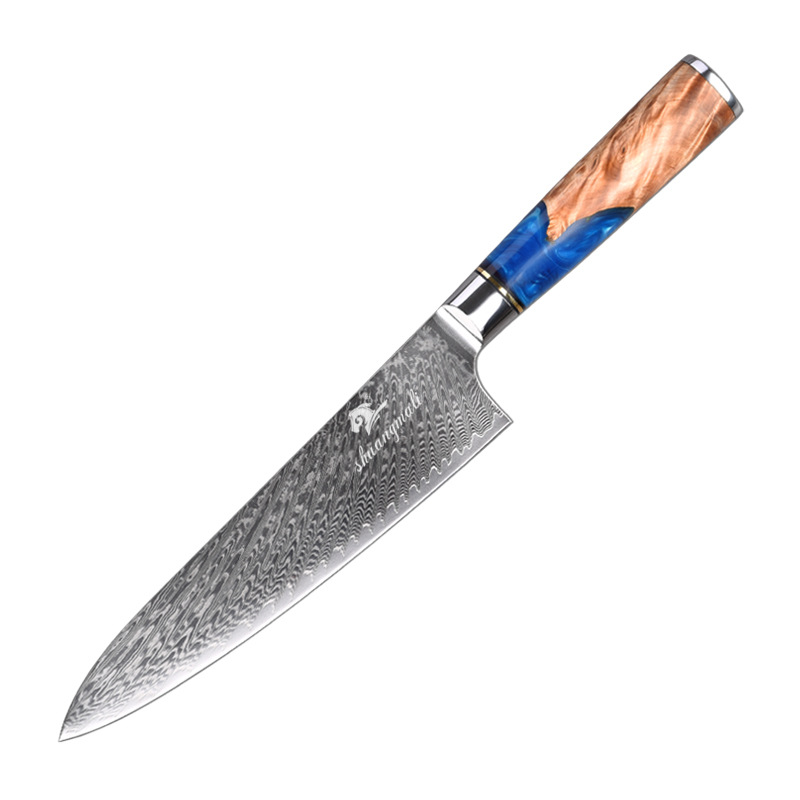 Damascus Steel Knife8-inch Resin Tree Handle Chef's Knife Slicing Knife Meat Cleaver Dropshipping
