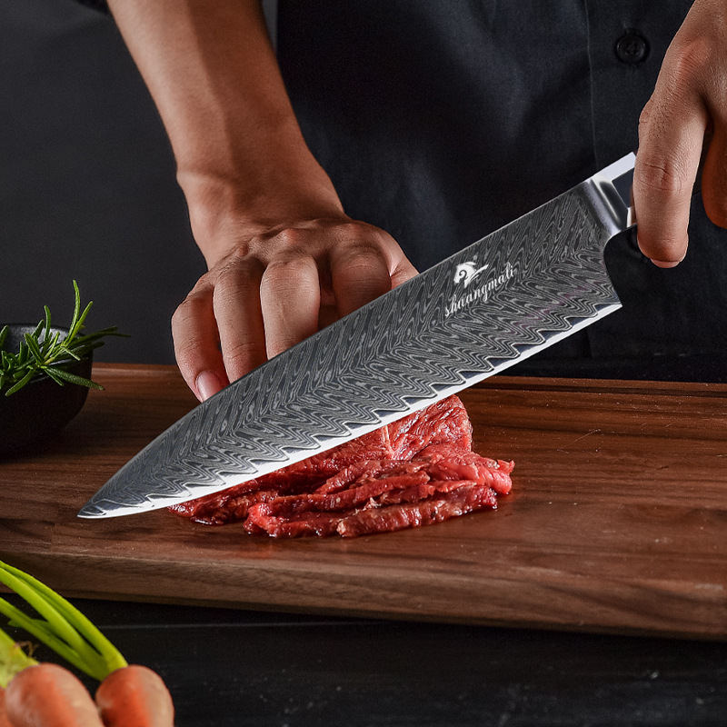 Damascus Steel Chef's Knife Kitchen Stainless Steel Carving Knife Rosewood Octagonal Handle Knife Dropshipping