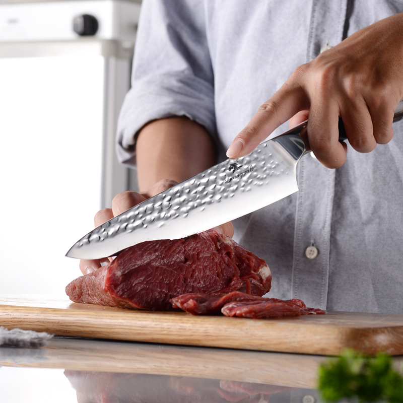 Chef's Knife Colorful Wooden Handle Forged With Hammer Pattern5cr15 Household Stainless Steel Kitchen Knife Yangjiang Shipping
