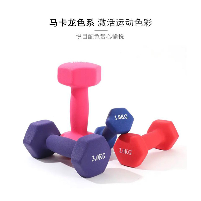 Plastic Dipped Dumbbell Frosted Hexagonal Women's Special Plastic Coated Dumbbell1-10kg Home Fitness In Stock