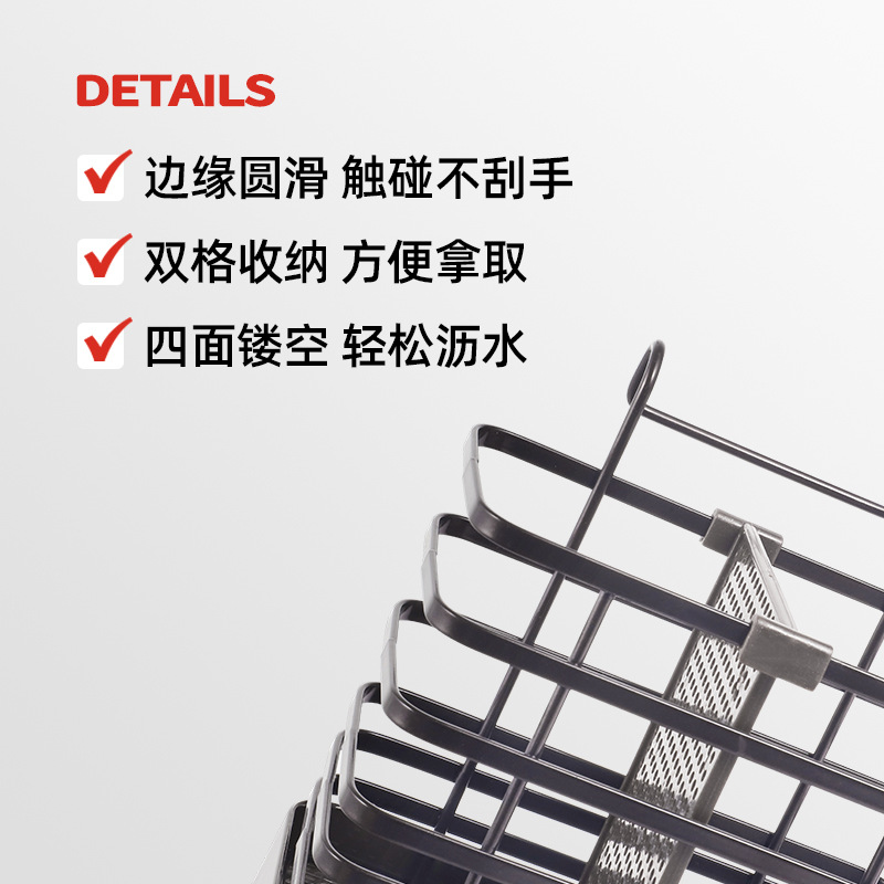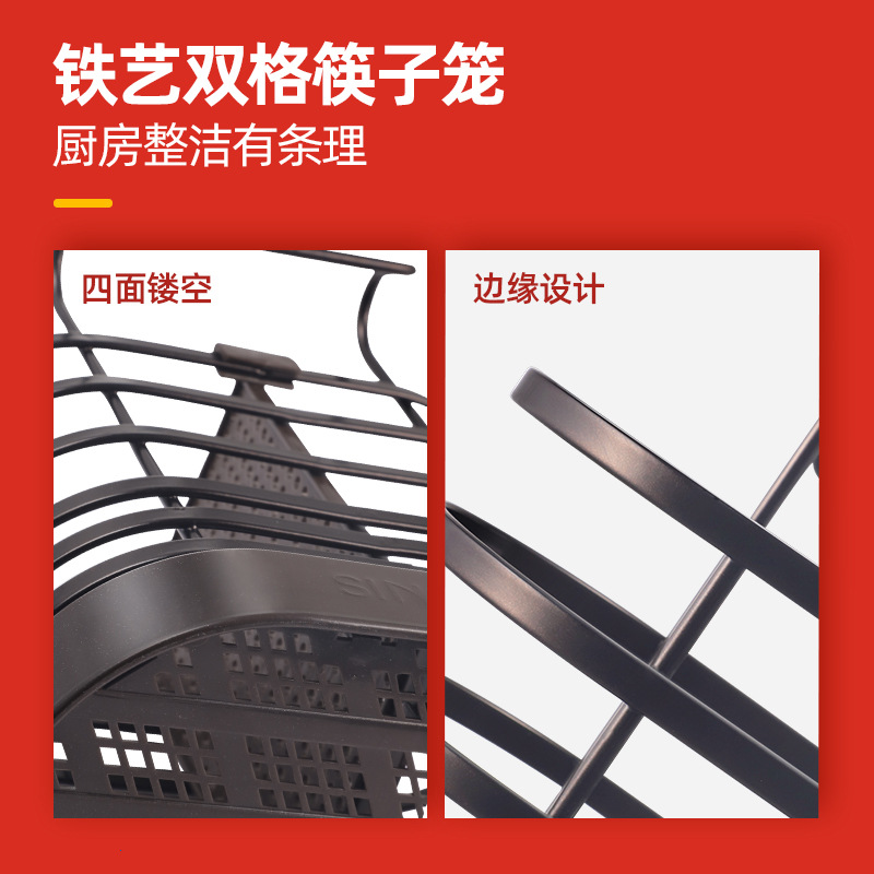 Compact Wall-mounted Chopstick Cage Iron Kitchen2 Chrome Spoon And Fork Holder Drain Storage Rack Vertical Simple Household Chopstick Barrel