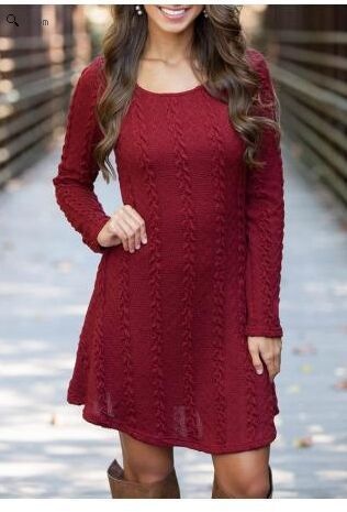 Autumn And Winter Hot-selling European And American Knitted Twist Sweater Round Neck Long-sleeved Dress (thick Style)
