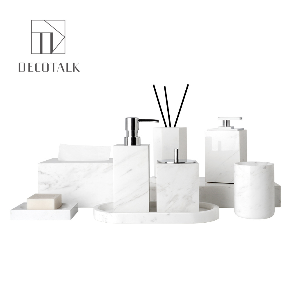 Deco Talk Marble Bathroom Wash Set Model Room Bathroom Furnishings Accessories Lotion Bottle Tray-Silver