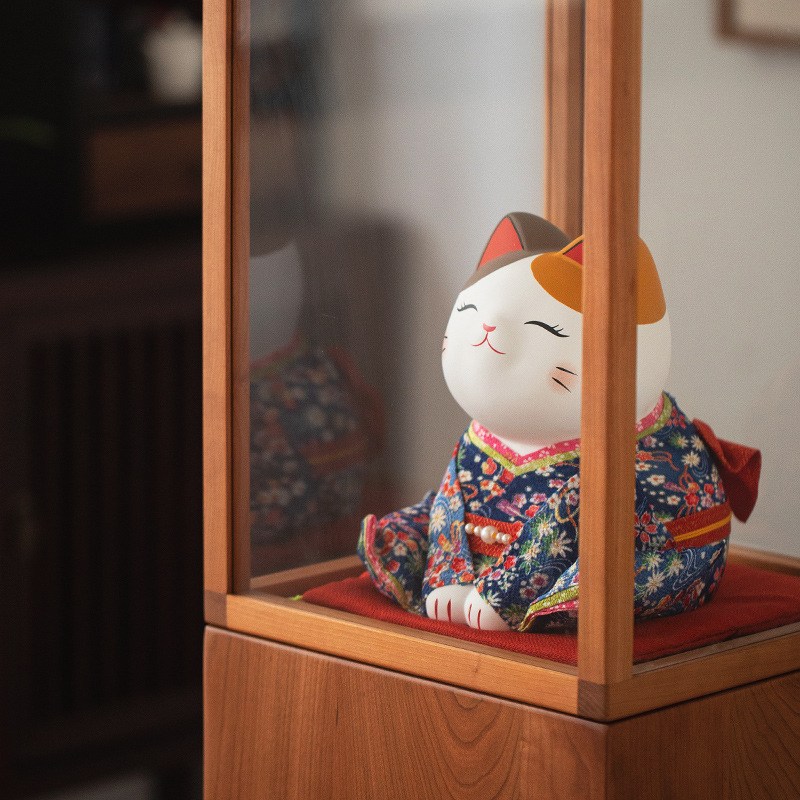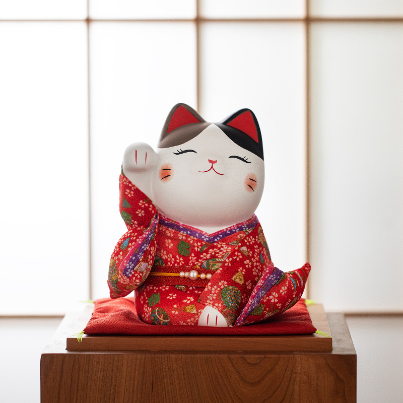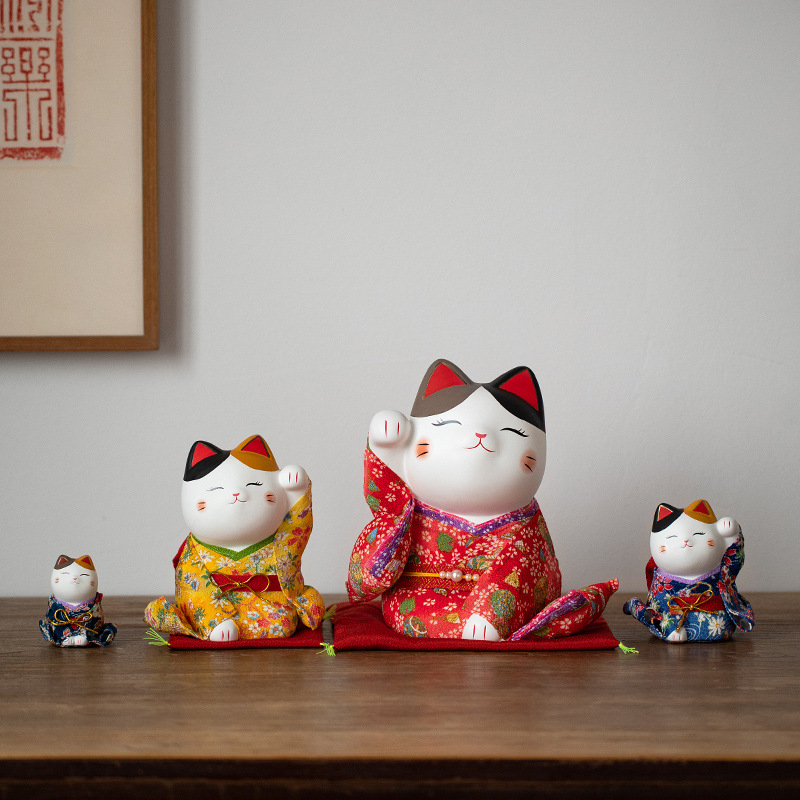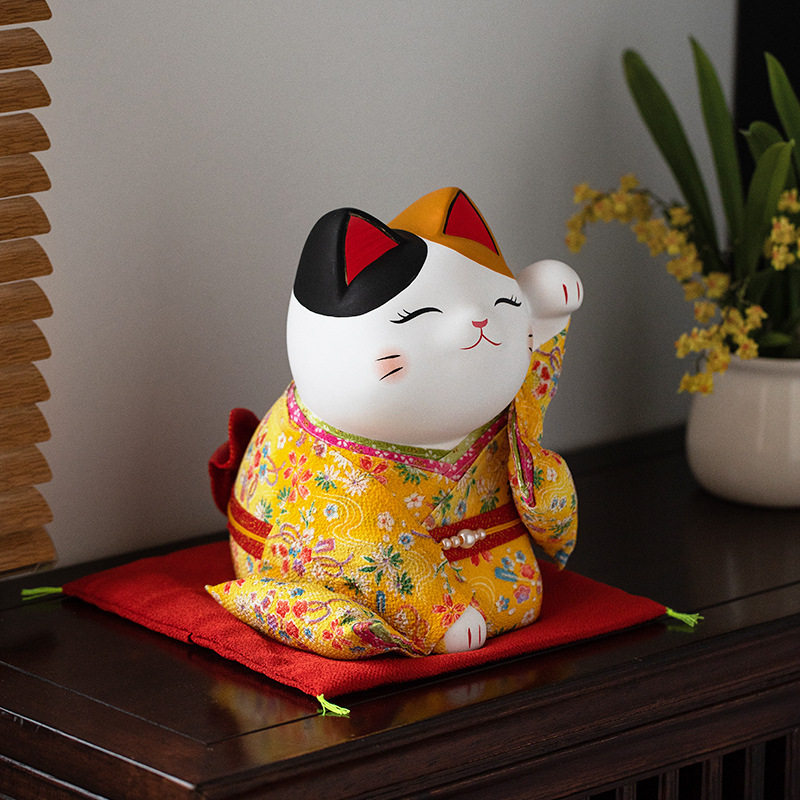 Japanese Cat Attendant Style Lucky Cat Ornaments Living Room Decoration Ceramic Ornaments Housewarming Year Cartoon Gift Gift Box