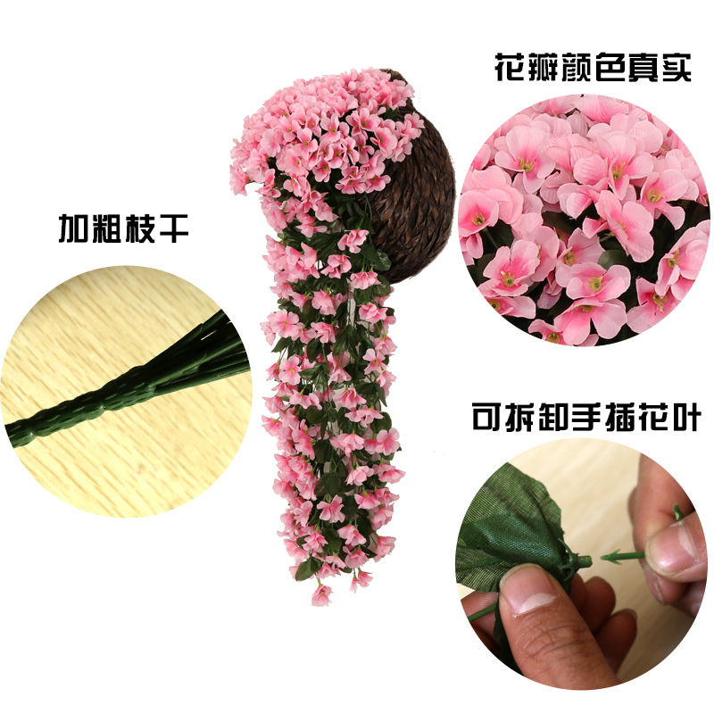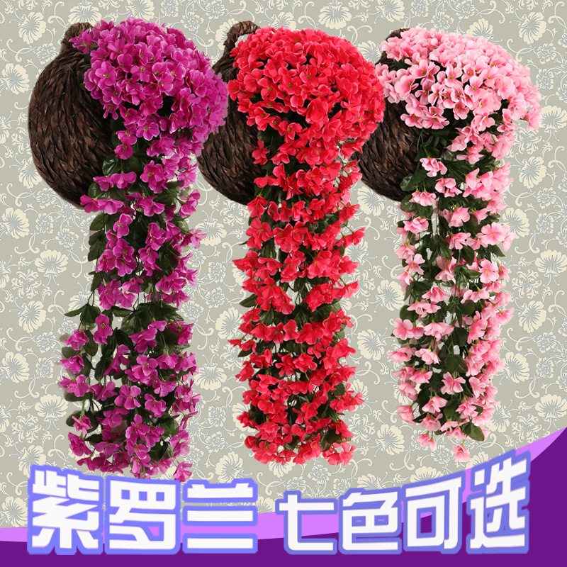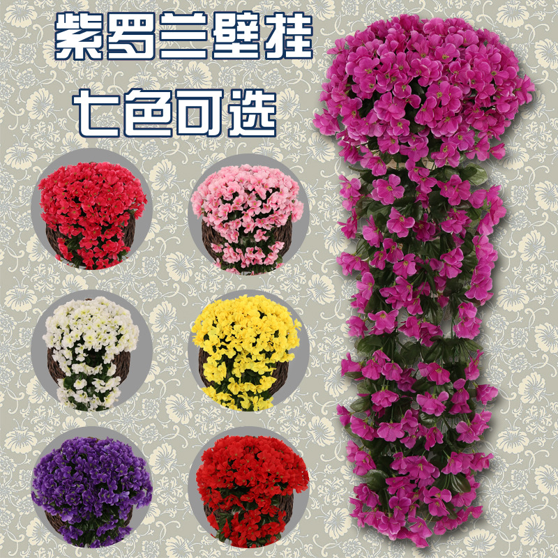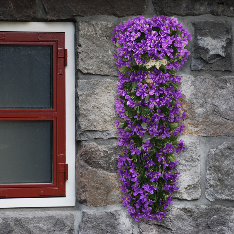 Simulated Violet Wall Hanging Flower Vine Wedding Home Balcony Interior Decoration Fake Flowers Violet Plastic Artificial Flowers