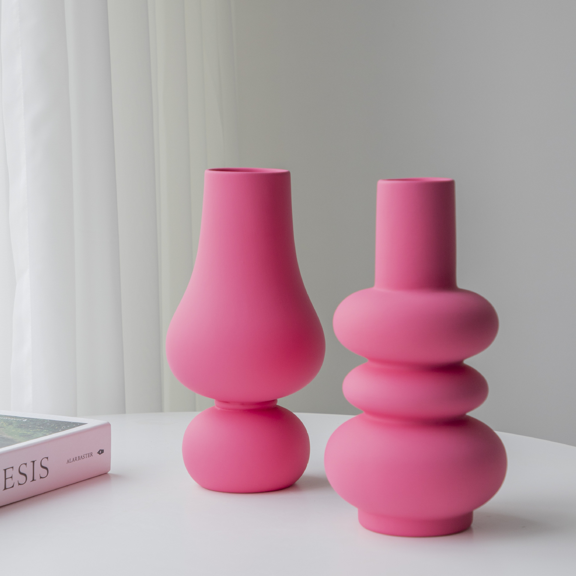 Creative Ceramic Vase Foreign Trade Home Living Room Flower Arrangement Hotel Soft Decoration Barbie Pink Art Ornaments