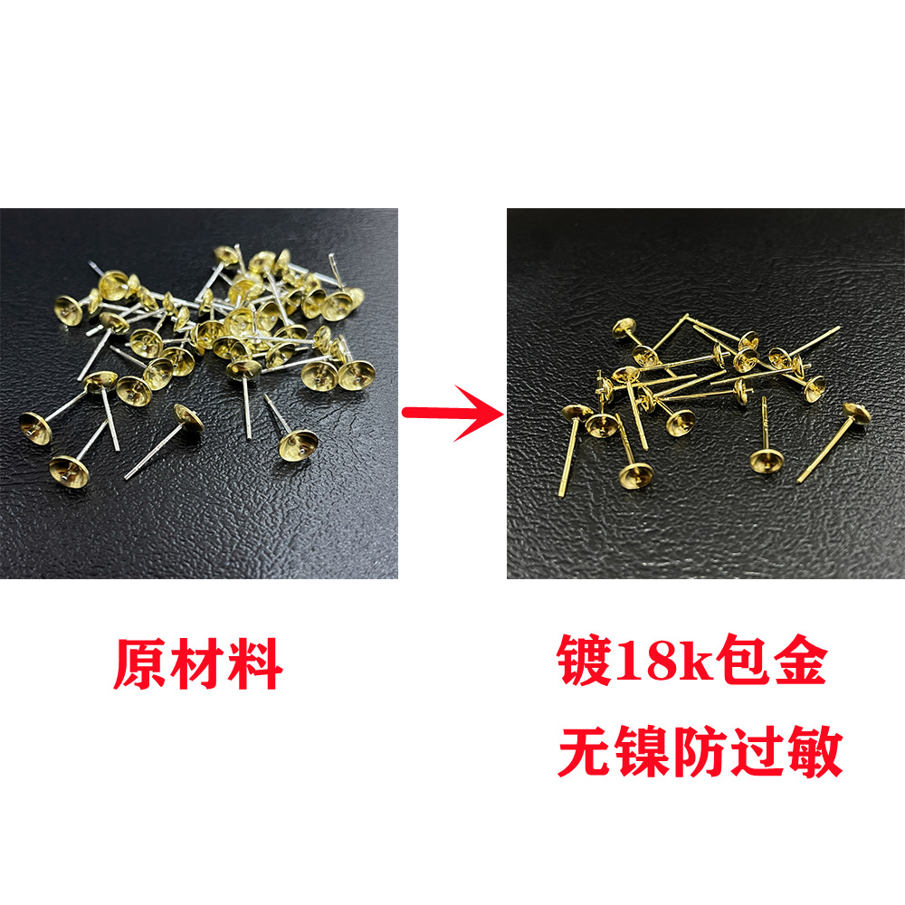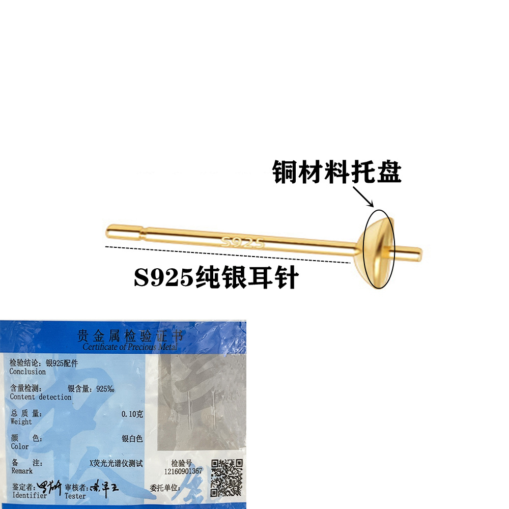 S925 Sterling Silver Ear Needle18k Gold-plated Color-preserving Ear Studs Empty Holder Handmade DIYEarrings Material Pearl Bowl Needle Empty Holder