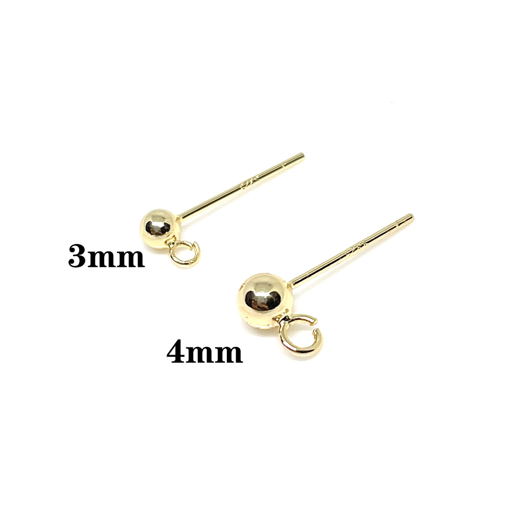 Color-preserving14k Gold-plated S925 Sterling Silver Bean Earring Accessories Smooth Round Bead Earrings Handmade DIYEarring Materials