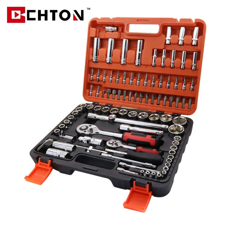 94-piece Set Of Chrome Vanadium Steel Car Repair Fast Ratchet Wrench Extension Rod Bit Head Long And Short Sleeve Tool Set
