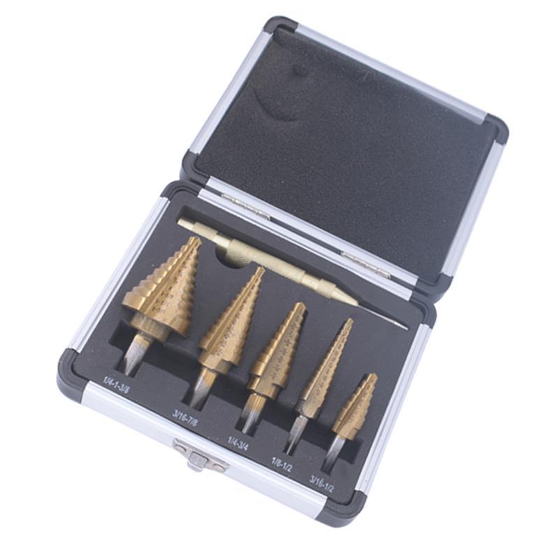British Pagoda Drill Set Triangular Shank High-speed Steel Titanium-plated Hole Opener6pcs Piece Set Expansion Hole Step Drill Bit