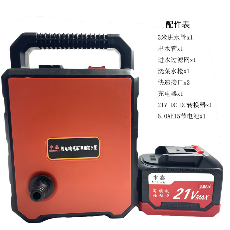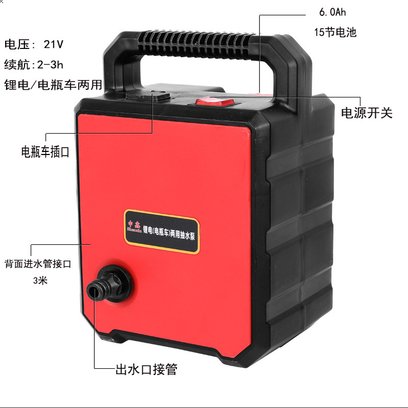 Battery Lithium Battery Dual-purpose Self-priming Water Pump Small Household Vegetable Watering Agricultural Irrigation Dual-core Water Pump