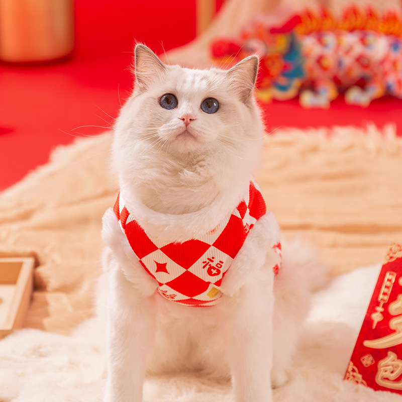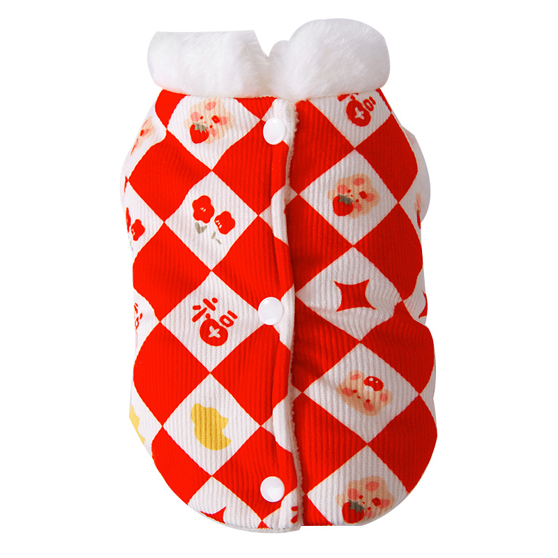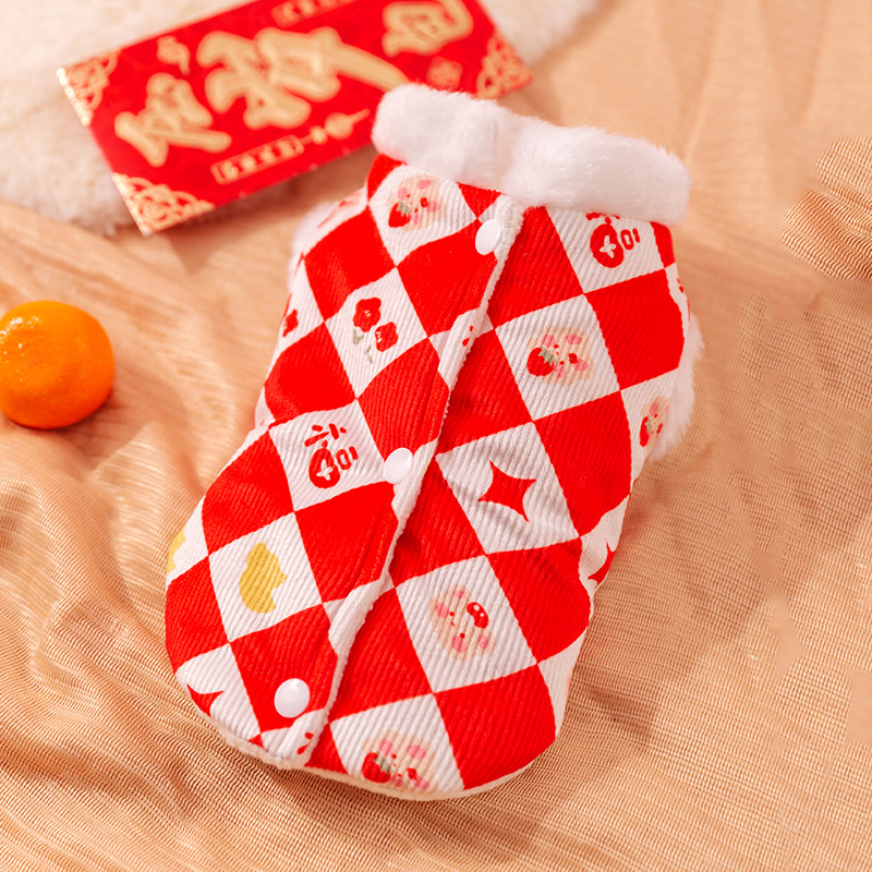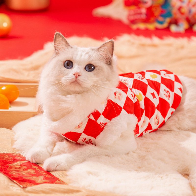 Year Cat Clothes Diamond Print Imitation Rabbit Fur Ragdoll Blue Cat Warm Vest Festive Year Pet Clothing
