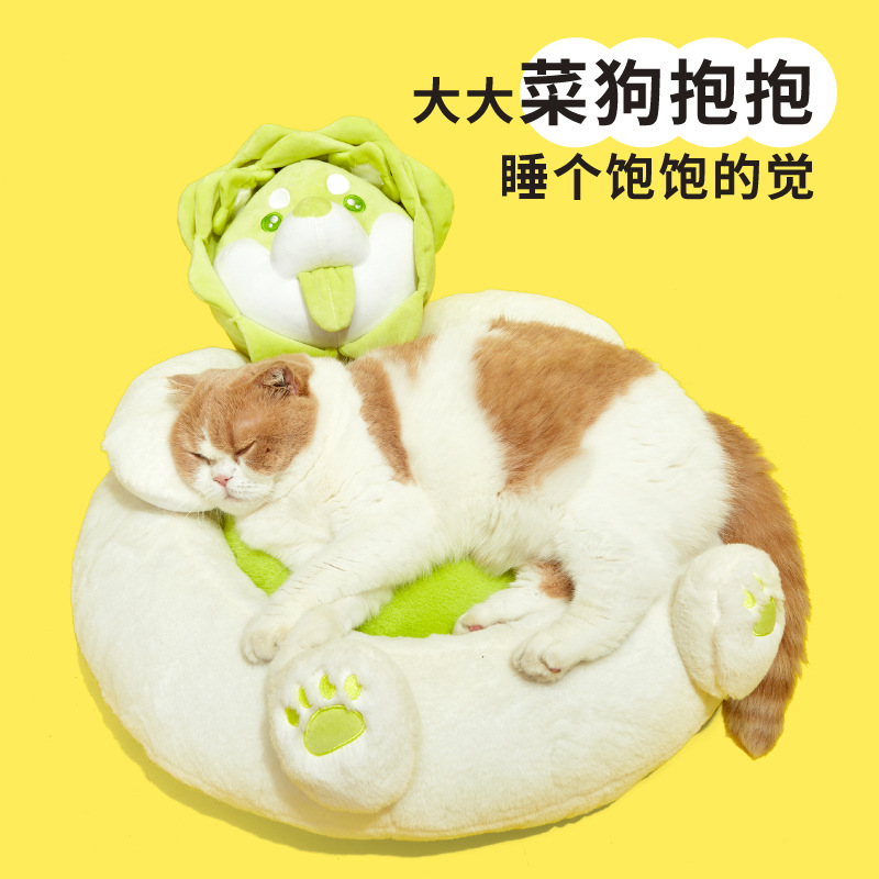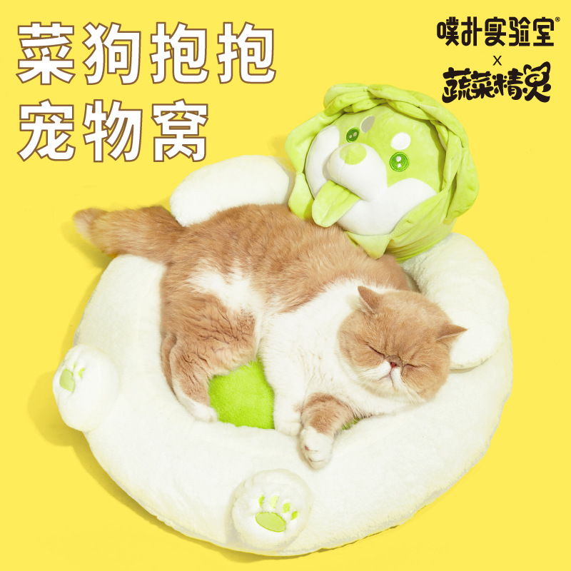 Pur Lab Laboratory Vegetable Dog Cat Bed Multifunctional Cat Bed Green Semi-enclosed Sleeping Bag Pet Supplies Cat House
