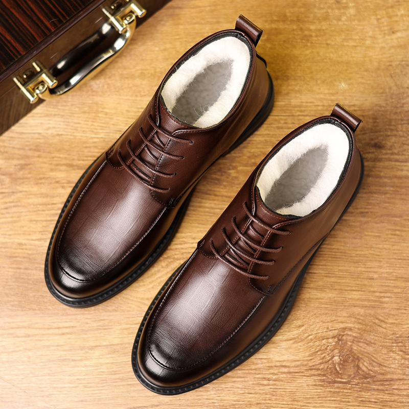 High-top Leather Shoes,Men's Cowhide Business Men's Shoes,Winter Velvet Warm Lace-up Cotton Shoes,Men's Cotton Leather Shoes,Drop Shipping