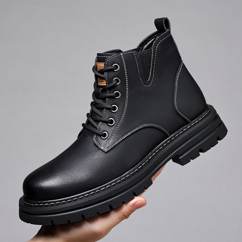 Martin Boots Men's Autumn British Cowhide Mid-top Leather Shoes Internet Celebrity Workwear High-top Men's Boots Drop Shipping