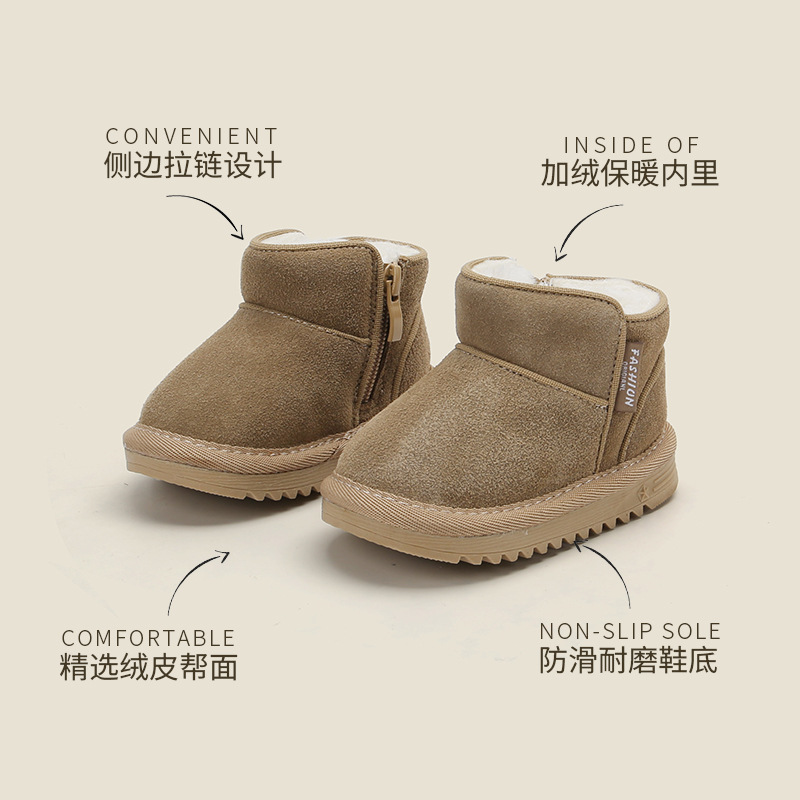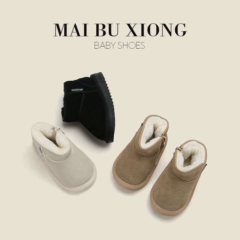 Maibu Bear Children's Short Boots Plus Velvet Boys'Snow Boots Warm Baby Shoes Winter Girls Baby Toddler Shoes
