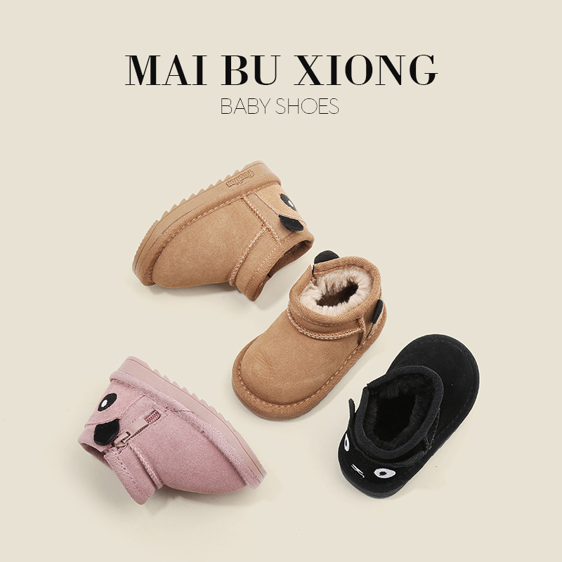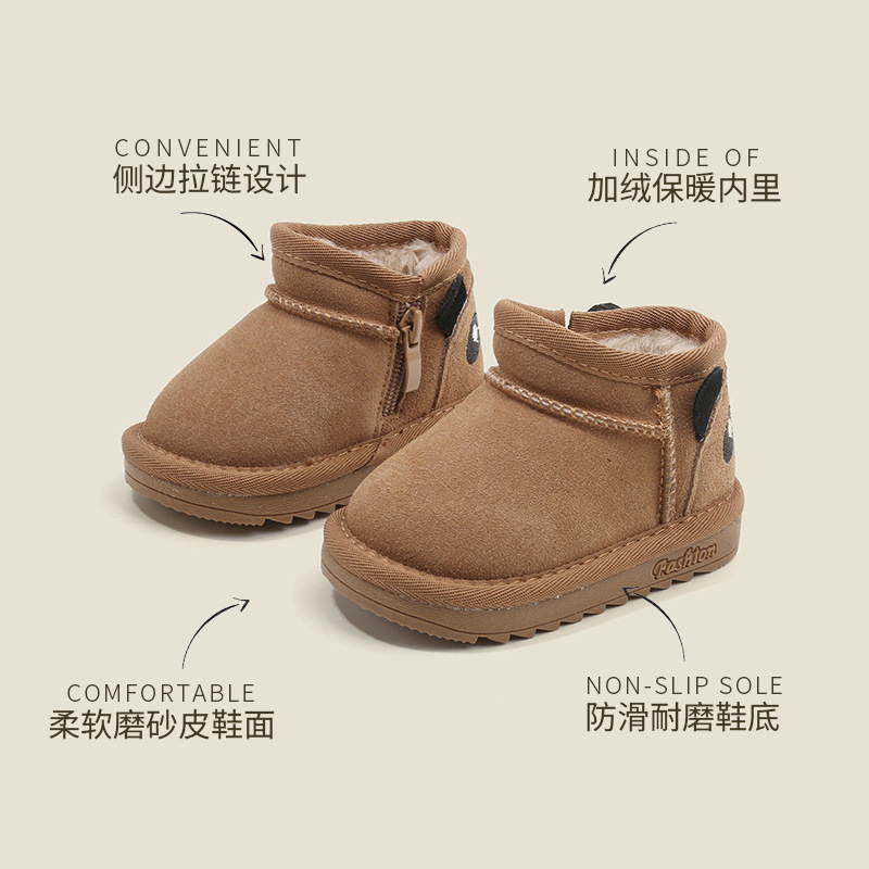 Maibu Bear Baby Cotton Shoes Children's Nubuck Leather Snow Boots Warm Baby Toddler Shoes Winter Boys'Short Boots