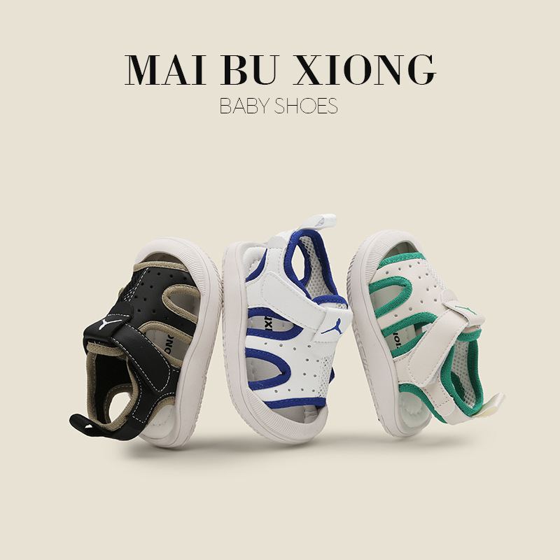 Maibu Bear Summer Boys'Versatile Sandals Anti-collision Girls'Shoes Baby Children's Color Matching Toddler Shoes Sports Baby Shoes