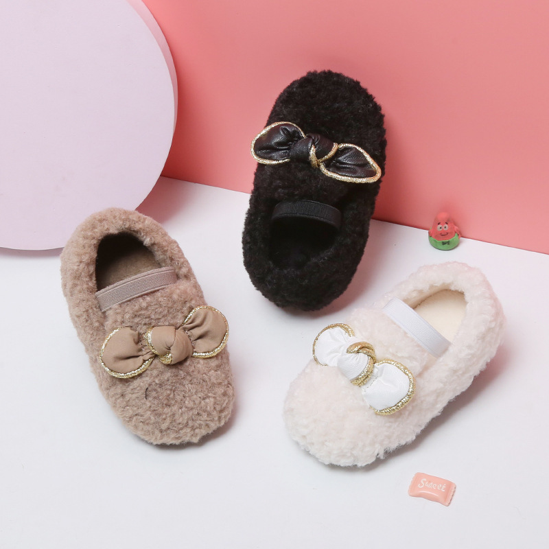 Maibu Bear Baby Furry Shoes,Bow Princess Shoes,Winter Baby Cotton Shoes,Girls'Beanie Shoes,Children's Toddler Shoes